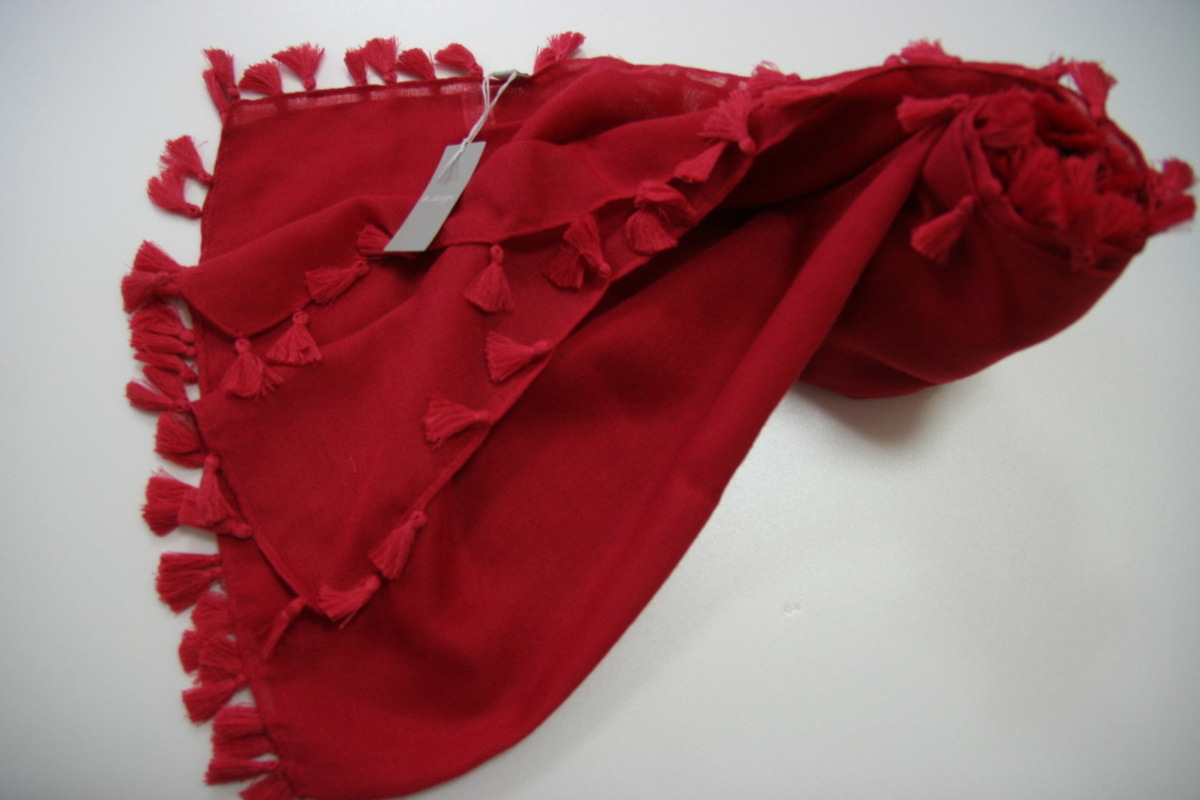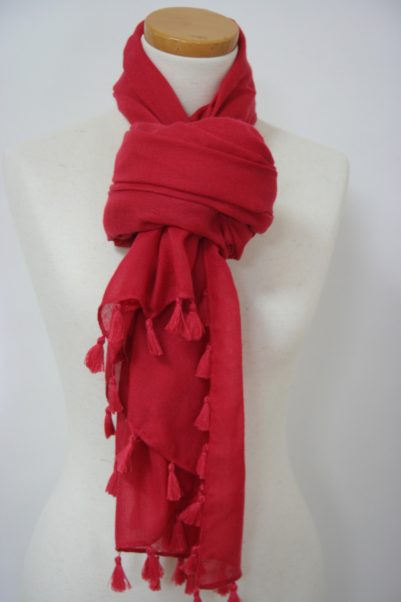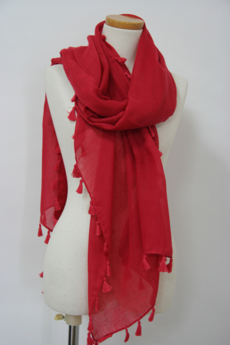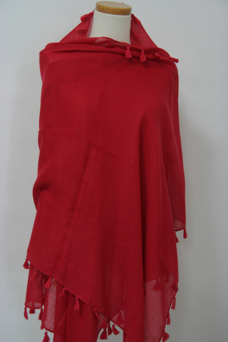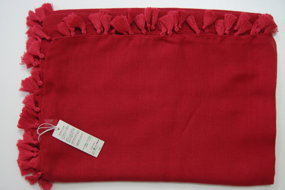 送料無料◆通年タイプ◆プレーンカラー◆日焼け&紫外線対策◆お洒落アイテム◆ショール◆タッセル付き◆大判ストール(レッド)176008