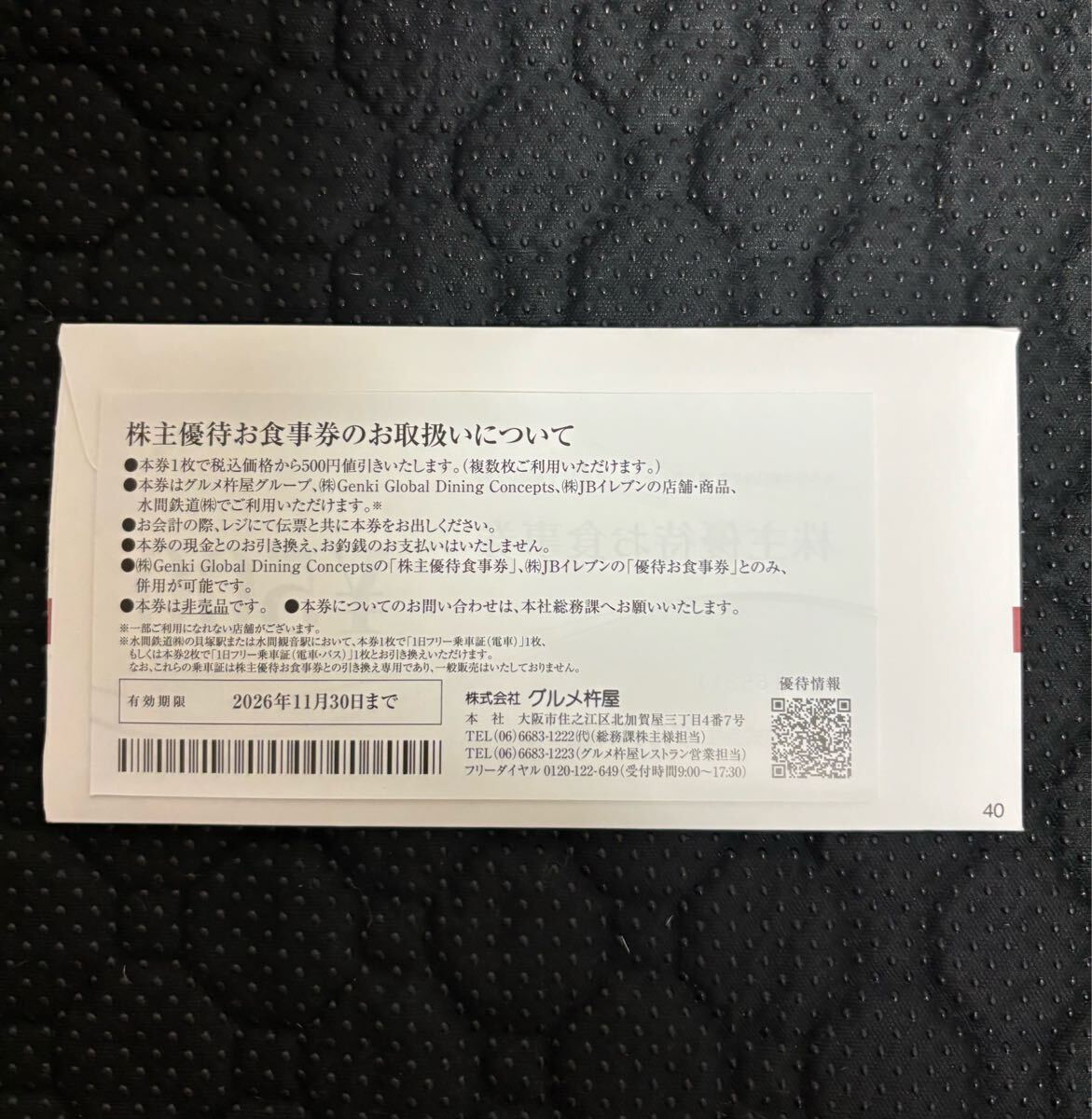 グルメ杵屋の株主優待お食事券500円券40枚です。