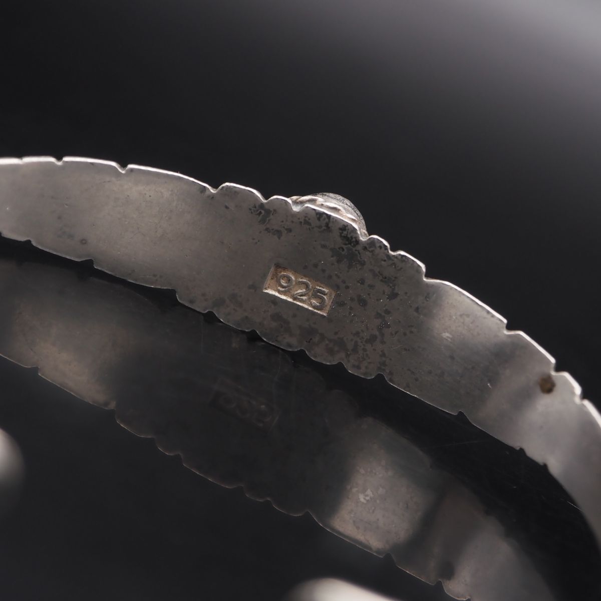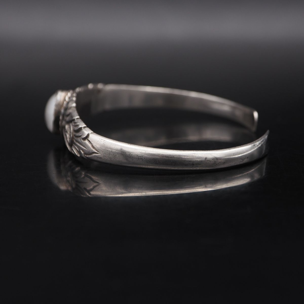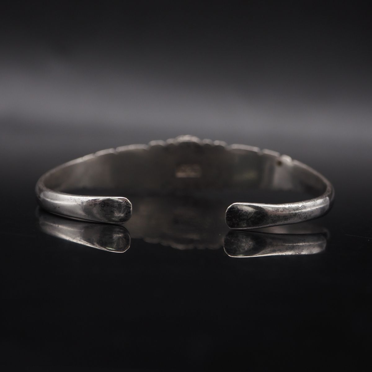 G144 ホワイトストーン 925刻印 バングル 彫刻 デザイン シルバー 腕輪 ヴィンテージ