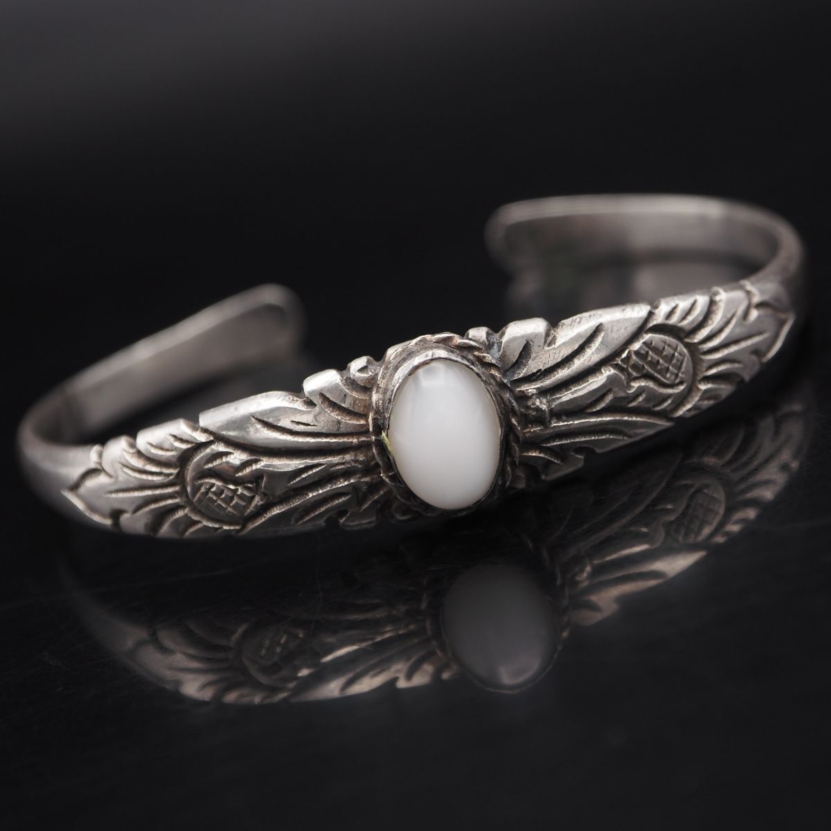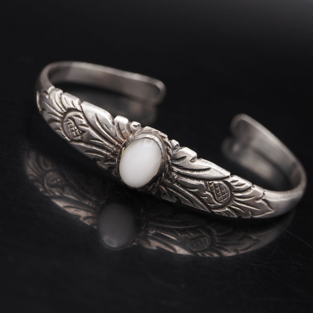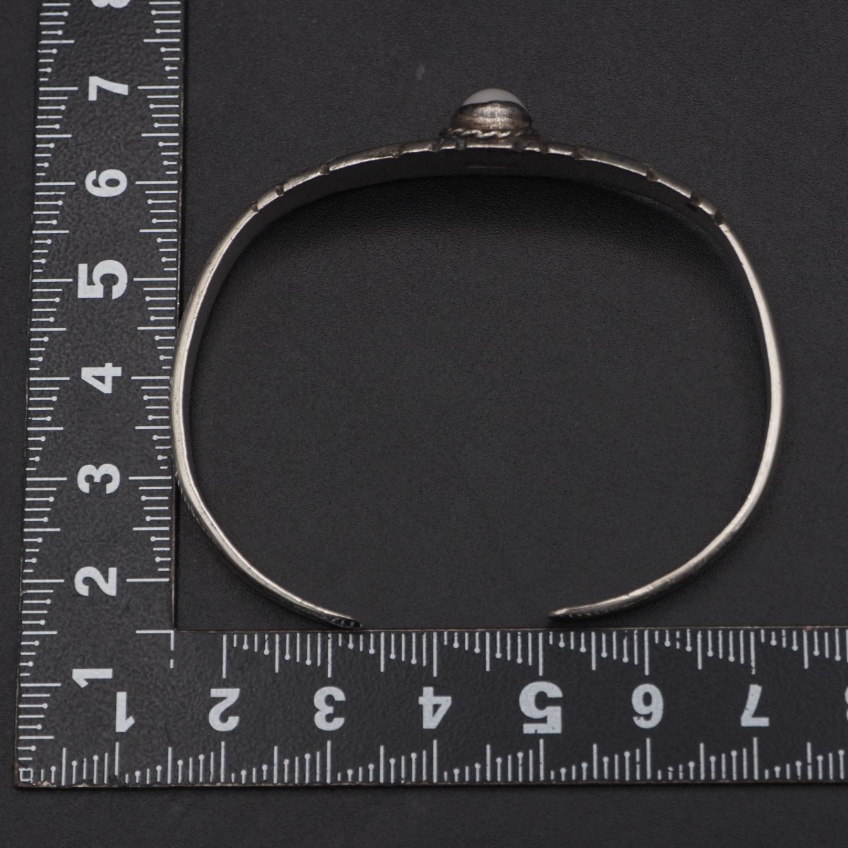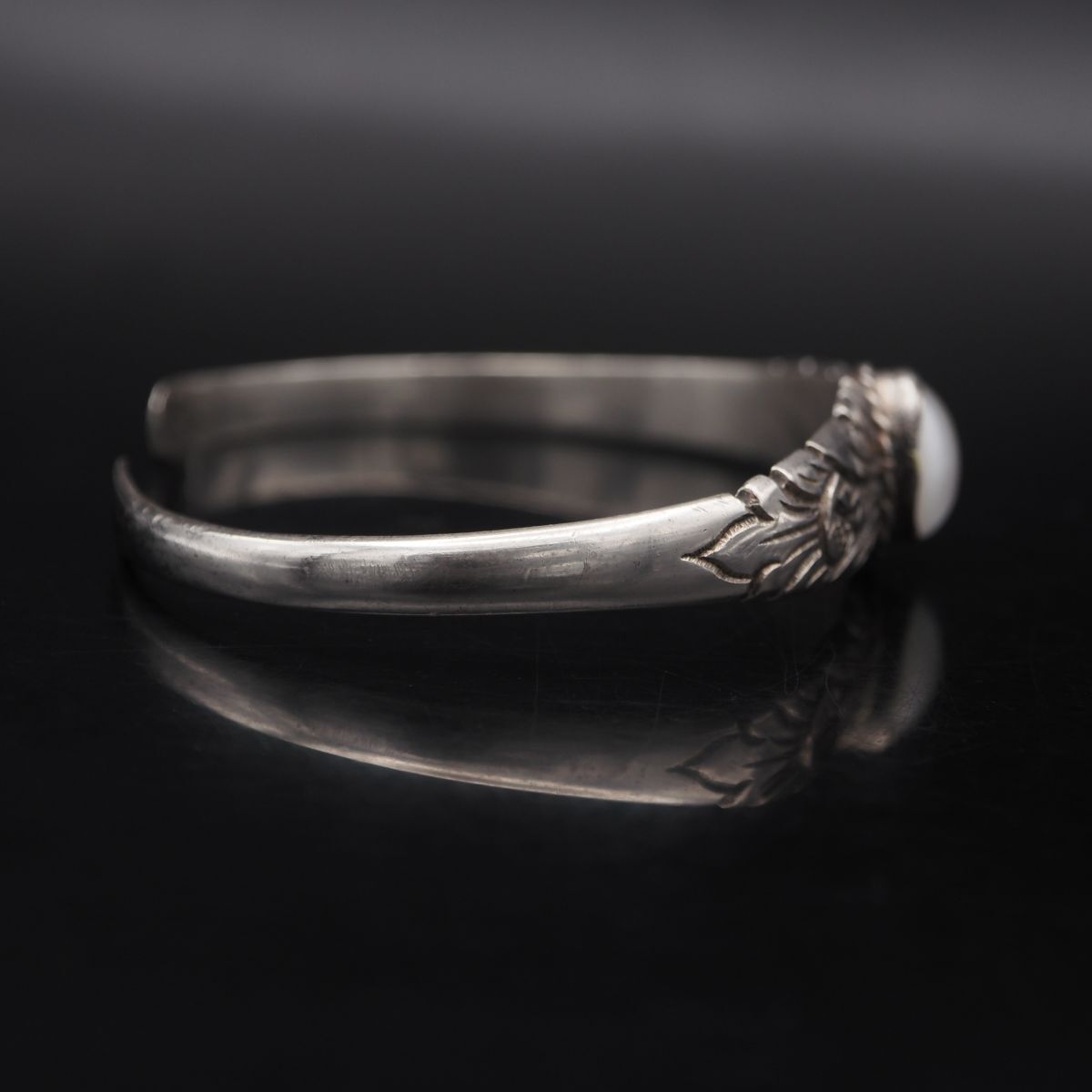 G144 ホワイトストーン 925刻印 バングル 彫刻 デザイン シルバー 腕輪 ヴィンテージ