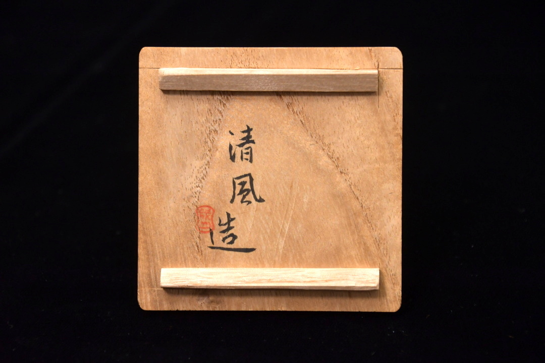 138 清風与平 青華磁 盃 釉裏彩● 酒器 ぐいみ 共箱 共布 日本酒 杯 和食 和食器 料亭 料理屋 古美術 骨董 現代作家 陶芸家 古玩