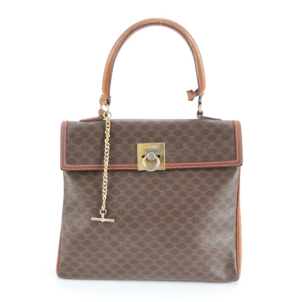 1円■ヴィンテージ■セリーヌ■マカダム レザー ハンドバッグ トップハンドル トート ブラウン 茶色 レディース EEE CV5-9