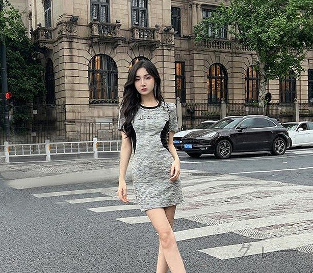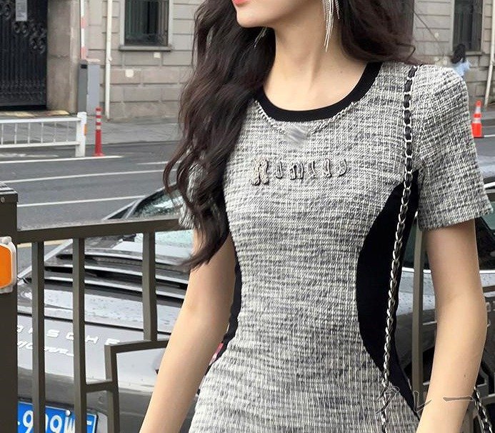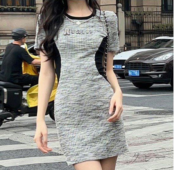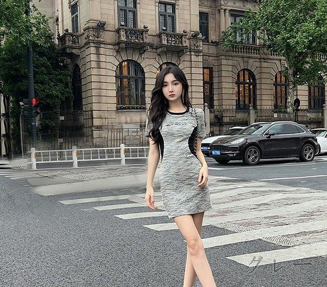 半袖ワンピース 切り替え バイカラー スリム 着痩せ シンプル M グレー