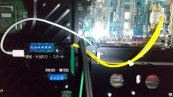 ・カウンターのデータ端子はスマスロ用の2ピンコネクターを使用せず、P機でおなじみのむき線を差し込むタイプにしました、差し込み端子には極性がありますのでカウントしない時はデータ線を入れ替えてください。