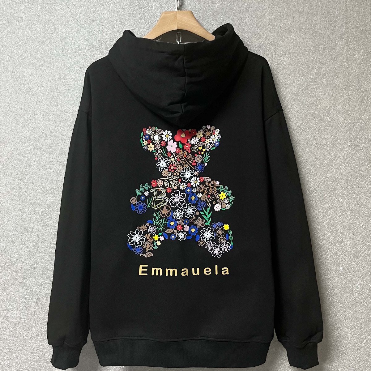 絶賛・パーカー 定価4万◆Emmauela・イタリア・ミラノ発◆綿100% ソフト 保温 クマ柄 花柄 可愛い 遊び心 トップス 長袖 日常 男女兼用 XL/50サイズ