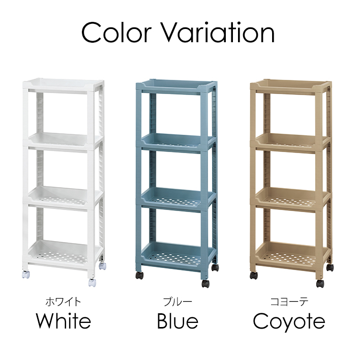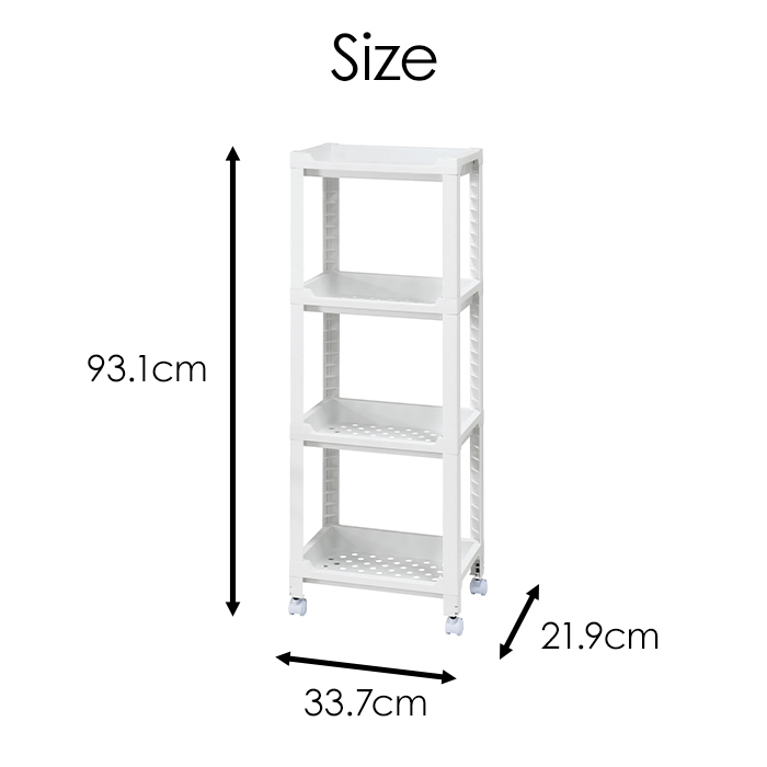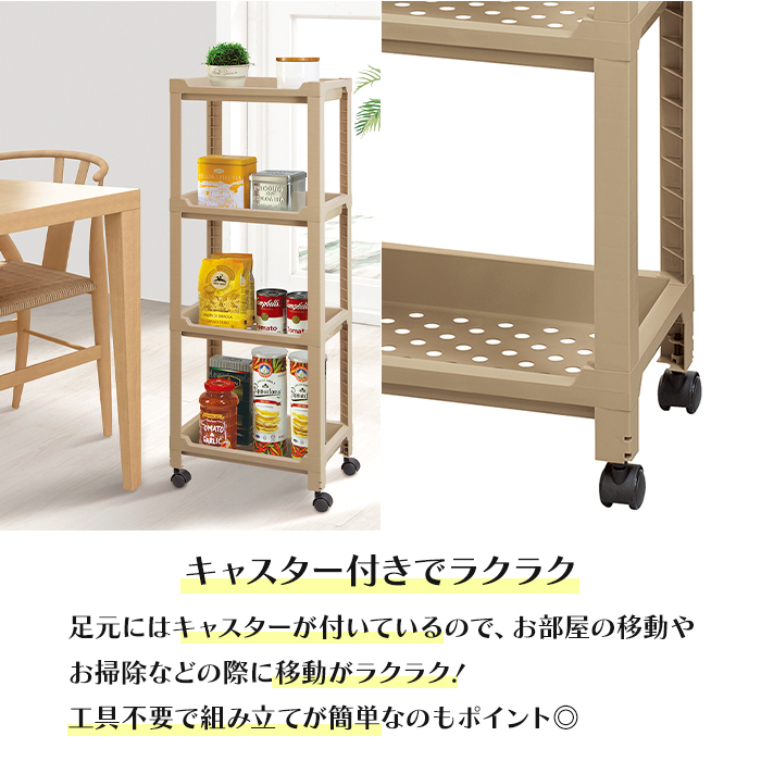 リビングやキッチンの小物収納に便利な移動式ラックです。