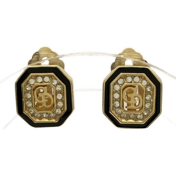 ディオール/クリスチャンディオール DIOR/ChristianDior イヤリング - ゴールド×クリア×黒 CDモチーフ/ヴィンテージ 美品