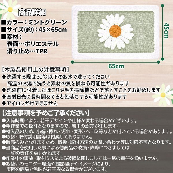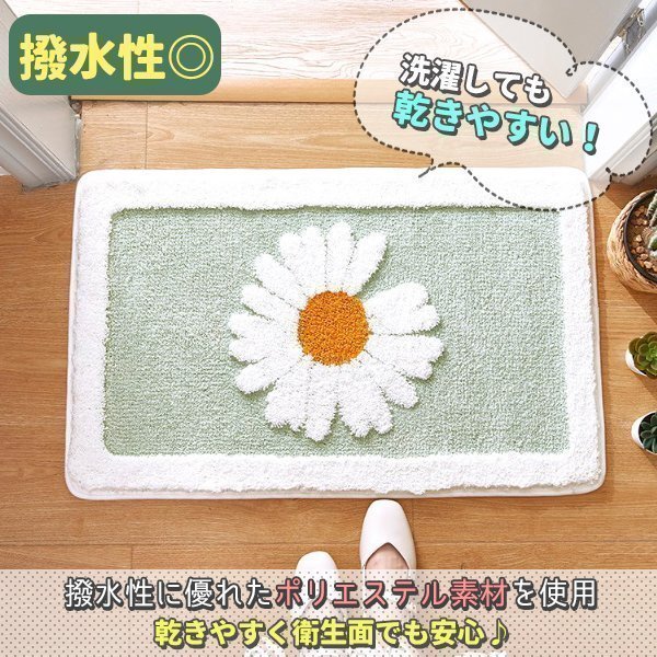バスマット 足ふきマット 花柄 インテリア マット 韓国 雑貨 北欧 玄関マット お風呂 グリーン ホワイト 緑 白 絨毯 かわいい おしゃれ