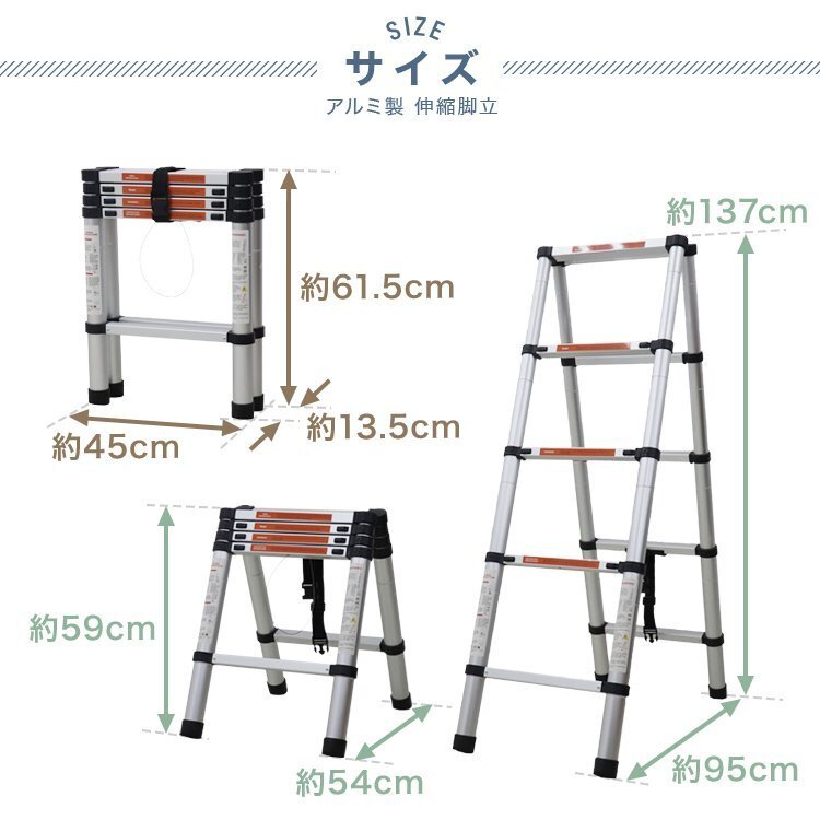 | 一家に一台あると便利な2WAY伸縮はしご!! 最長1.4mまで伸びるはしご。 伸縮自在で使用時には1段ずつの引き伸ばし可能! 必要な高さでロックできます。 収納時の高さはなんと61.5cm! 軽自動車でも運べるコンパクトサイズ! 2階の外壁、窓、屋根のお掃除はもちろん、電球交換など幅広く活躍! 私生活に不可欠なはしごです! 段落ちしない安全ロック付。 【商品仕様】 ・最長(約):140cm ・収納時(約):45×61.5×13.5cm ・重量(約):11kg ・耐荷重(約):150kg ・素材:アルミ(連結部分:スチール) 【注意事項】 ・海外製品で、簡易梱包での輸入のため風防に擦れや多少の小キズなどがある場合がございますが、商品自体には問題ありませんのでご了承下さい。 ・商品は、モニターによって色合いが異なって見える場合があります。 ・仕様・デザインは改良のため予告なく変更することがあります。 |