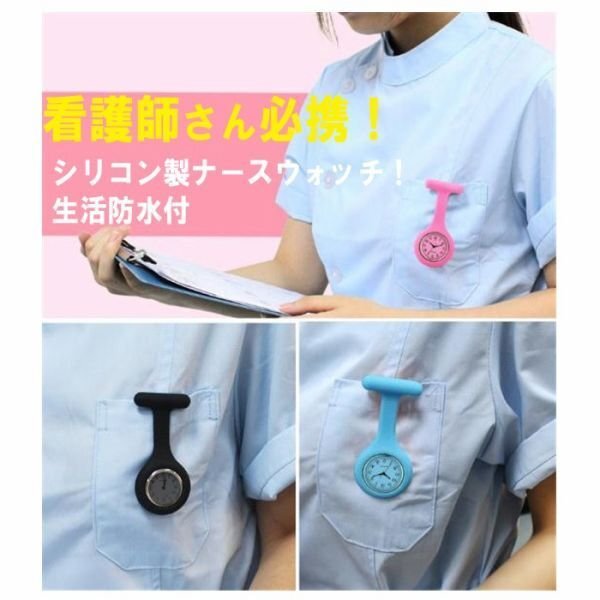 シリコン ナースウォッチ 選べる5色 逆さ文字盤 懐中時計 クリップ時計 医療従事者 脈拍測定 生活防水 ナース 看護師 アナログ時計
