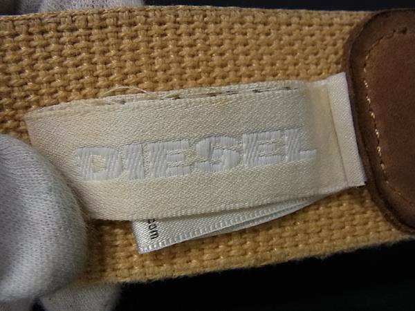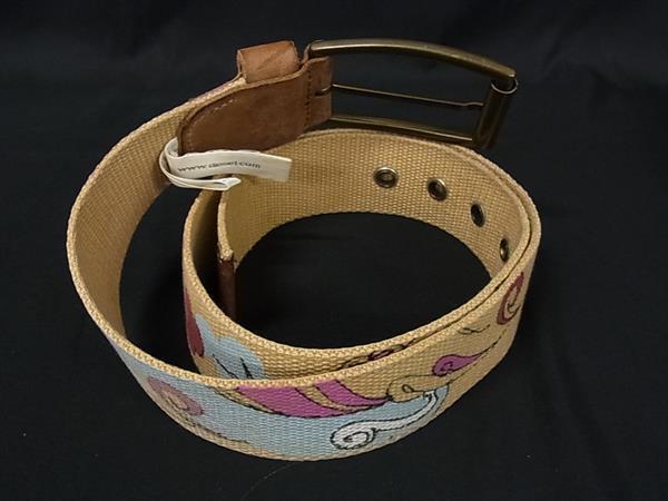 DIESEL ディーゼル コットン×レザー 総柄 ゴールド金具 ベルト 表記サイズ 85 ベージュ系×マルチカラー DK3151