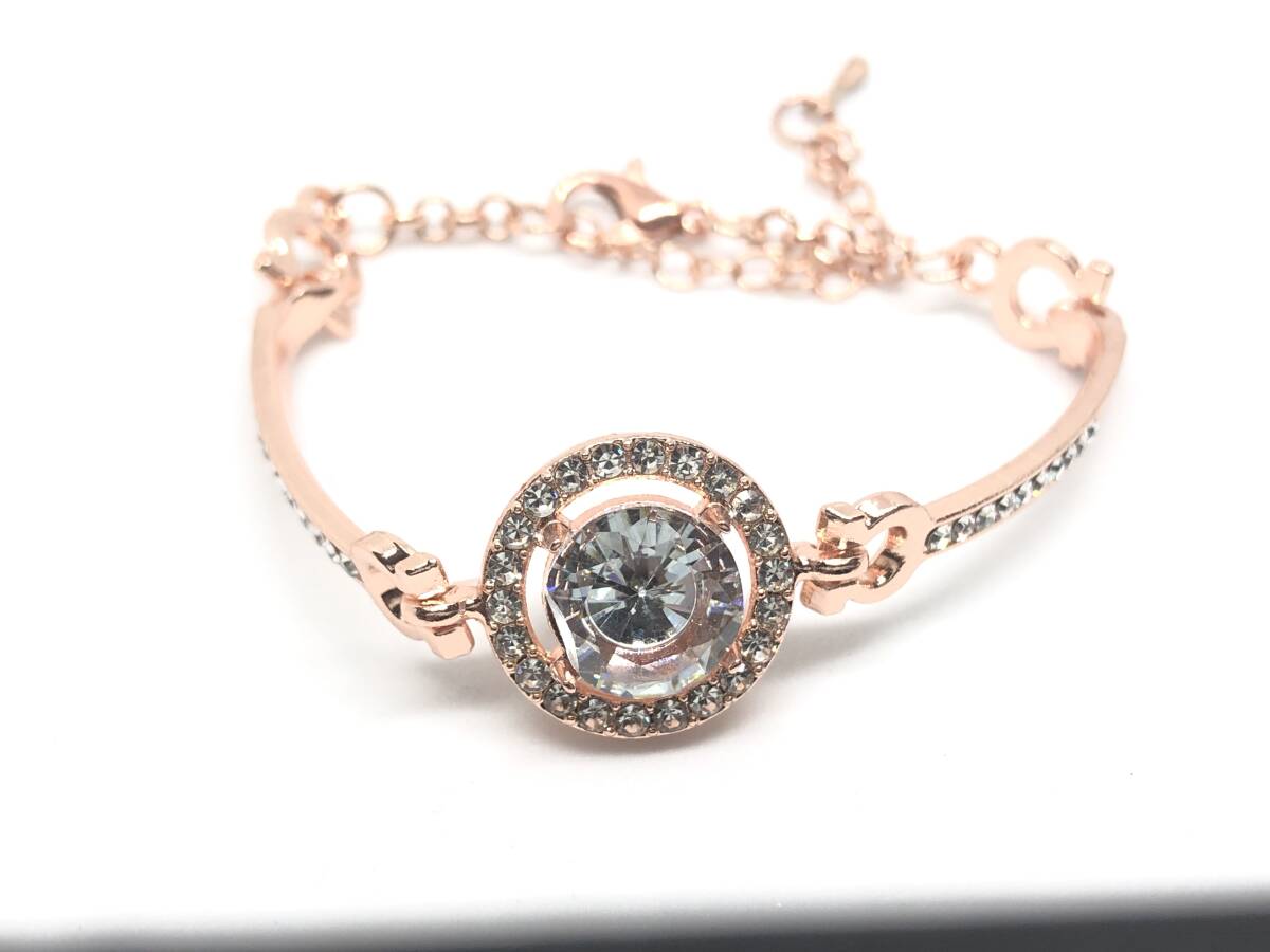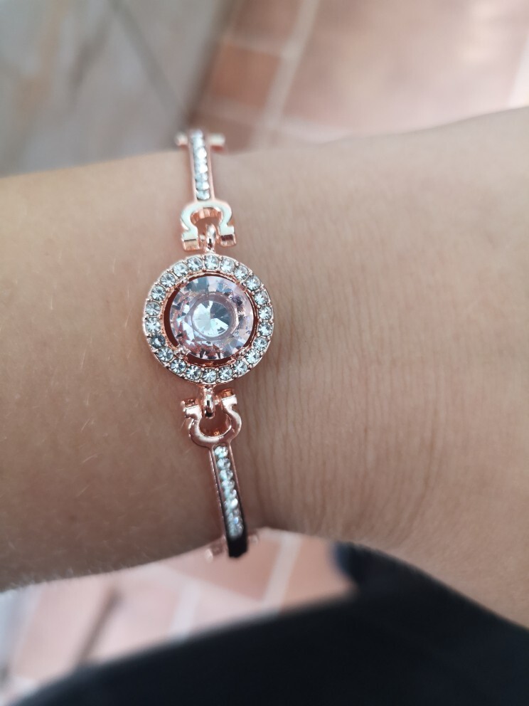エレガント♪大粒シャイニング ラインストーン ブレスレット ローズピンク