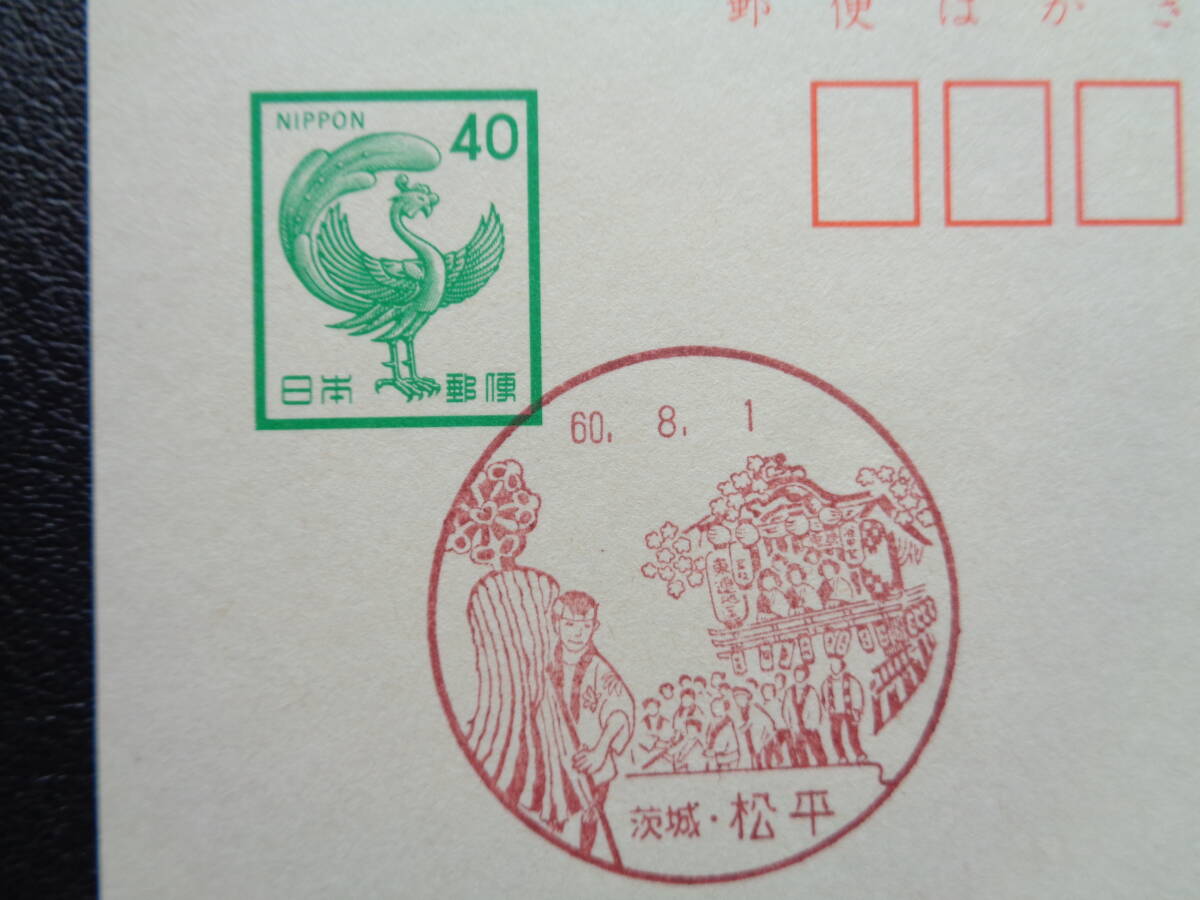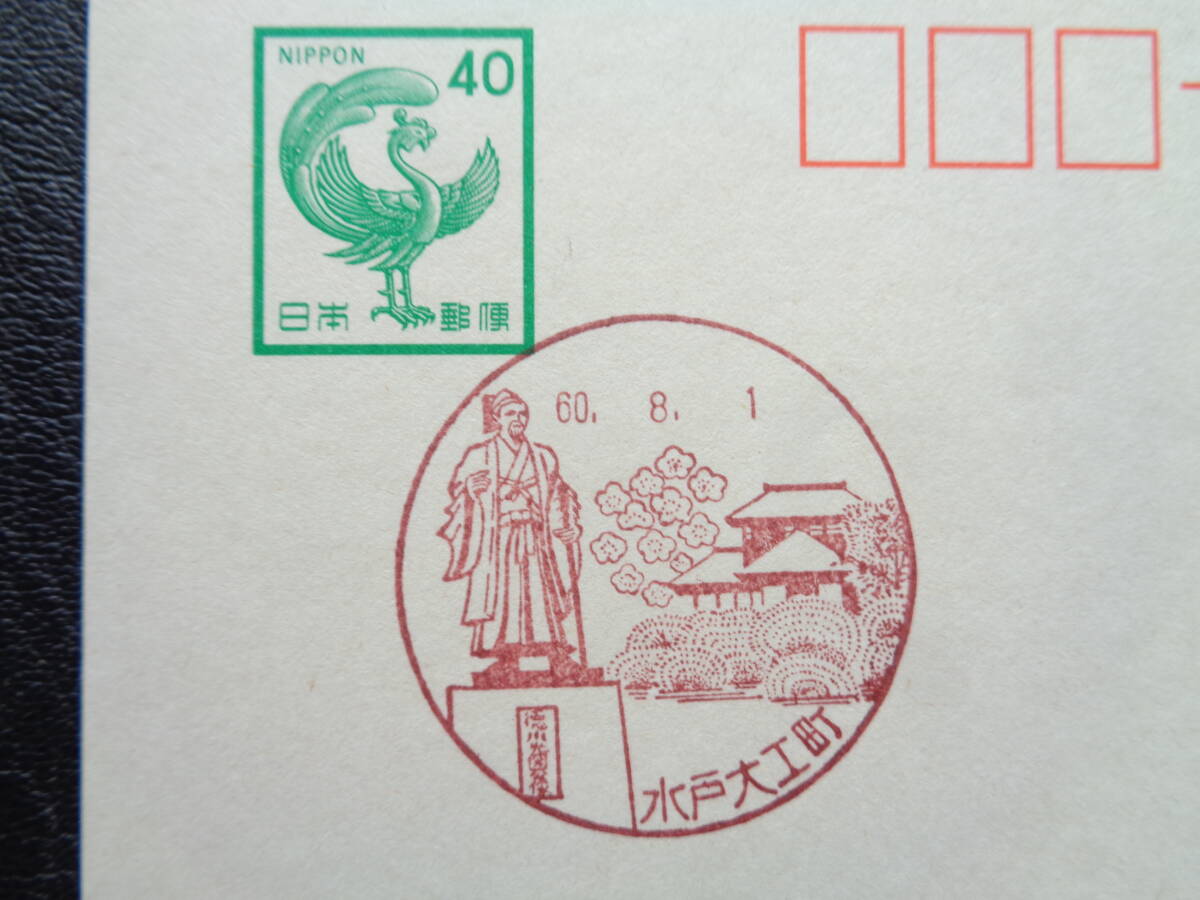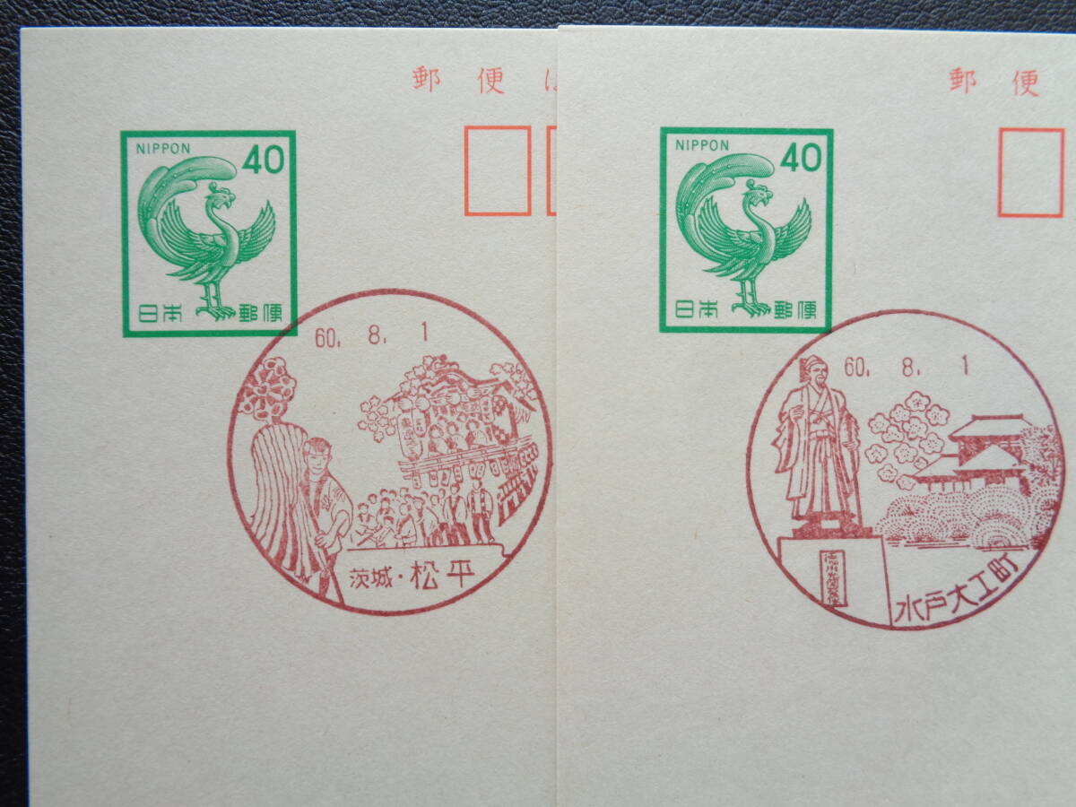 鳳凰はがき    初日印/風景印    茨城県2枚    水戸大エ町/S60.8.1   松平/S60.8.1