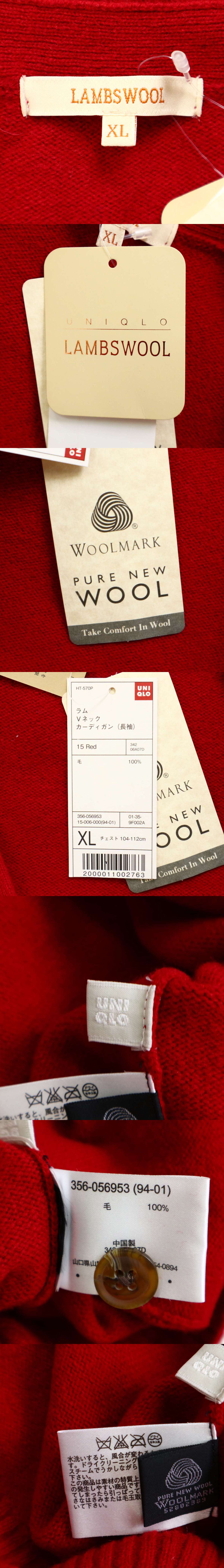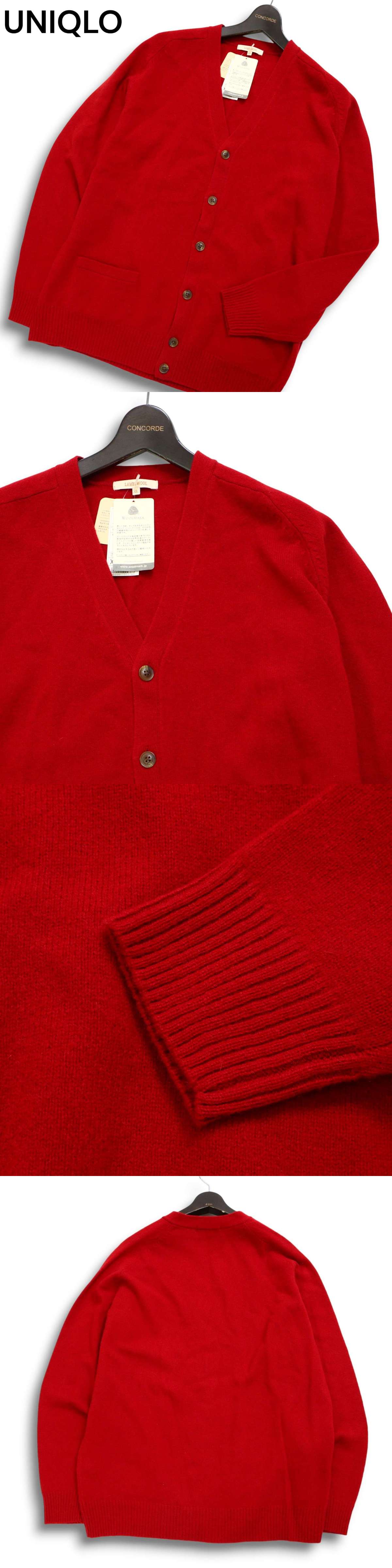 【新品 未使用】 UNIQLO ユニクロ 秋冬★ ラム ウール100% ニット カーディガン Sz.XL メンズ 大きいサイズ 赤