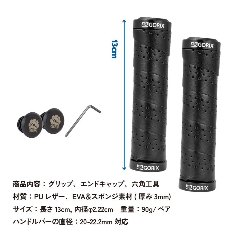クロスバイクやミニベロ、小径車などのグリップ交換に最適です。 ストレートタイプで表面の穴は通気性を良くします。 巻き付いているバーテープは厚さ3mmでEVA&スポンジ素材。 もちもちな触感でソフトな握り心地。しっかり滑りとめがきいて、グリップ力も向上。 グリップが柔らかく路面からのショックも吸収し、手への負担が減されます。 両サイドネジ固定式なので脱着などの作業効率が大幅にアップ。 [筒型(丸)グリップ] オーソドックスな丸形グリップは身近で馴染のある癖のない筒状形状。 手全体でしっかり握れる事ができるのでダイレクトで細かい操作性は抜群です。 高いコントロール性を発揮します。エルゴタイプが苦手な方にもおすすめです。 [ダブルロックオンタイプ] 両サイドをネジ締めするダブルロックオン。 しっかりと固定し落下しない、またネジ固定で交換作業の短縮に。 ※ネジの固定を必ず行って下さい。 [EVA&スポンジ] 弾力性と強度がありクッション性に優れ軽量で衝撃に強い。 また表面の無数の穴は通気性を良くします。 [様々な自転車に対応] ハンドルバーの直径:22.2mm。ほとんどのタイプの自転車に適しています。 ※一部、特殊なハンドル径のハンドルでは使用できませんので、ご注意下さい。 商品内容グリップ、エンドキャップ、六角工具 サイズ長さ13cm, 内径φ2.22cm 重量約90g/ペア 材質PUレザー、EVA&スポンジ素材(厚み3mm) 対応フィットハンドルバーの直径20-22.2mm |