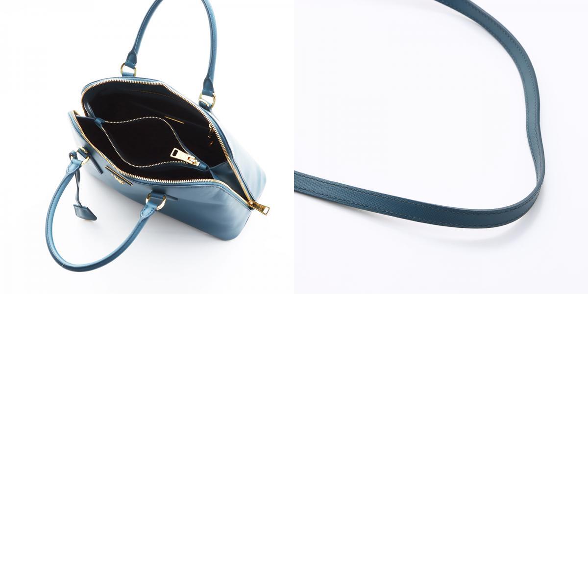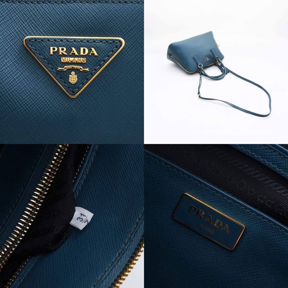 未使用保管品 プラダ PRADA 2way 三角ロゴ トライアングルロゴ レザー ショルダーバッグ ブルー WS7337