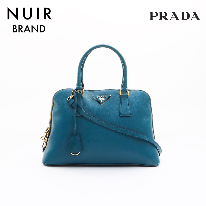 未使用保管品 PRADA 2way 三角ロゴ トライアングルロゴ レザー ショルダーバッグ ブルー