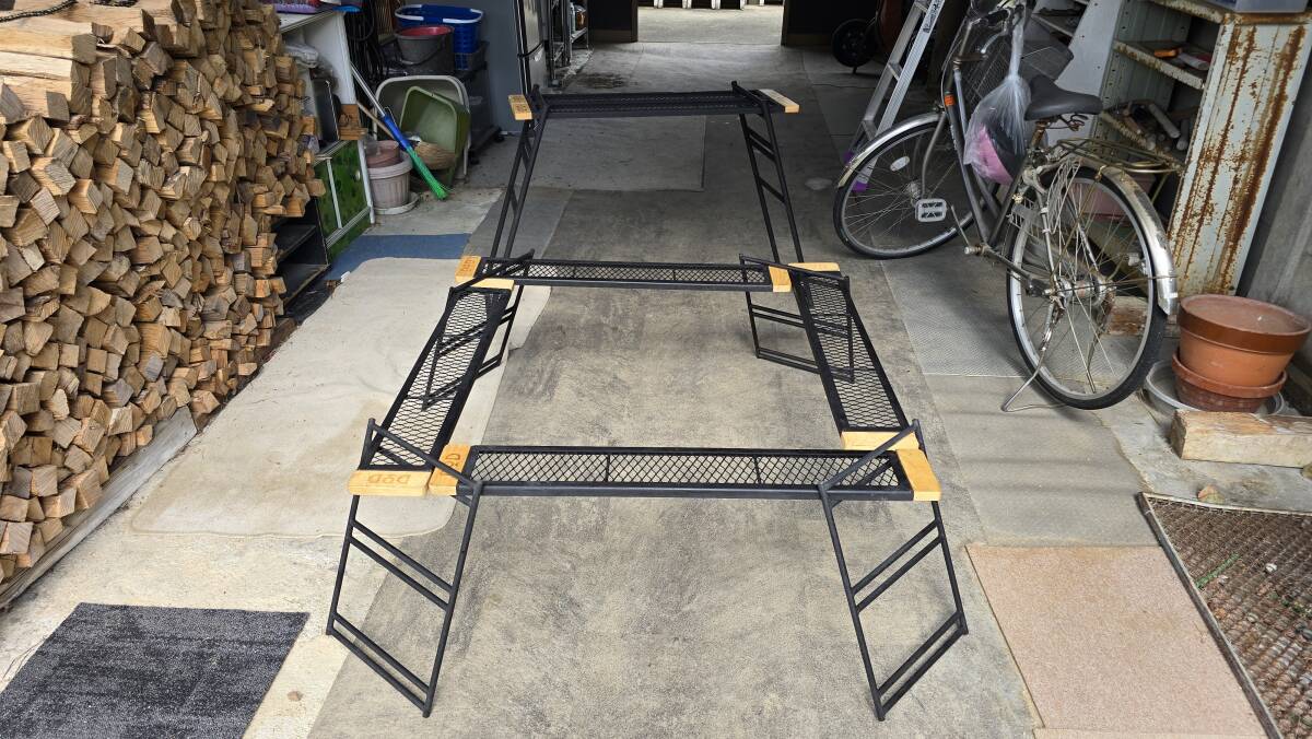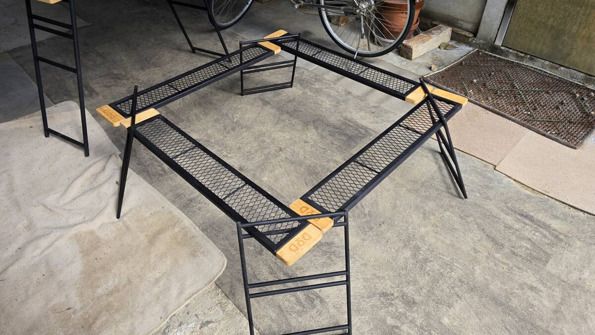 DoD テキーラレッグの焚火を囲んでテーブルになります。テーブルセットもあるので焚火の上でバーベキューや鍋料理もできます。