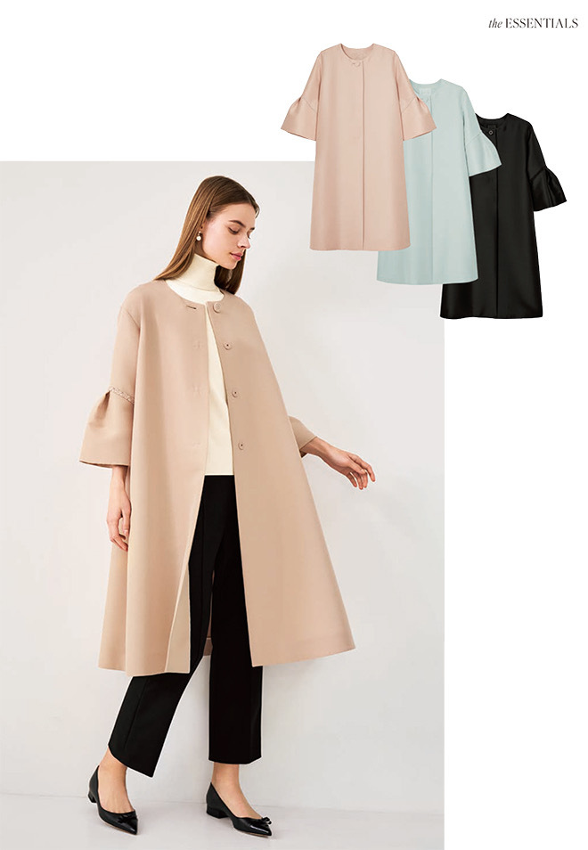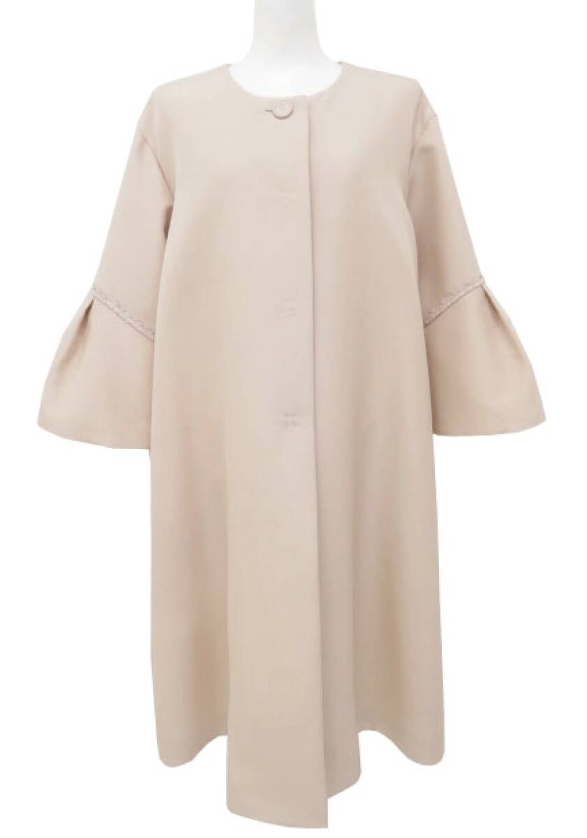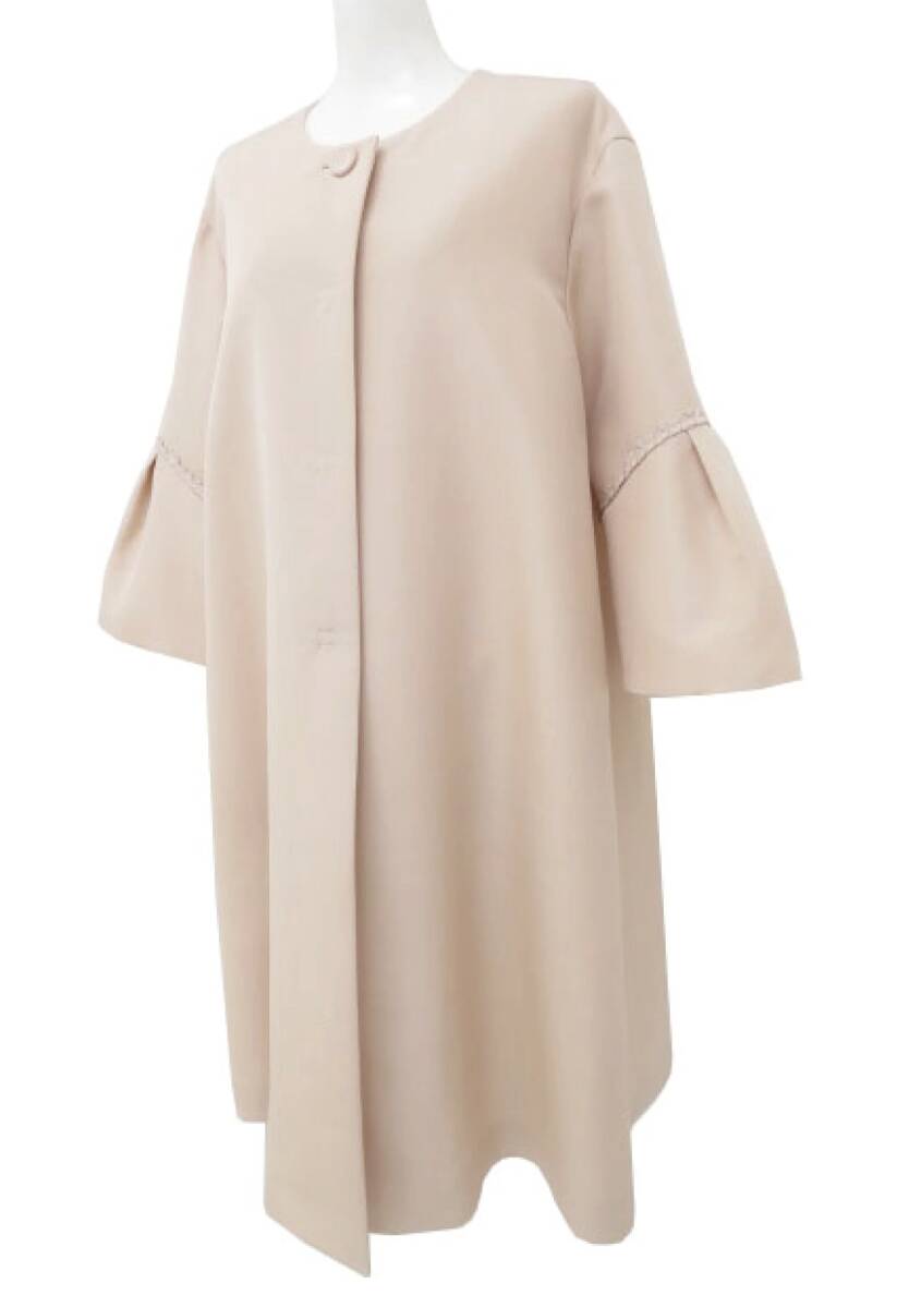 繊細なパール釦とグログランブレードがポイントのコートです。フロントの釦は手作業でパールを施した特別な釦です。シルエットは上質なシルクウールを惜しみなく使用したボリュームのあるフレアーシルエット。上品で美しい光沢とグログランリボンのコントラストがポイントになり、さり気ない華やかさを演出します。