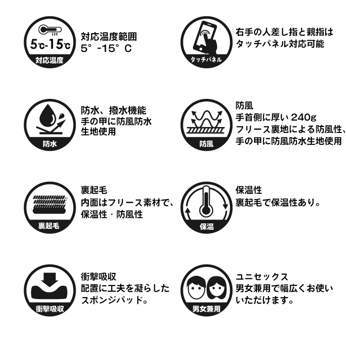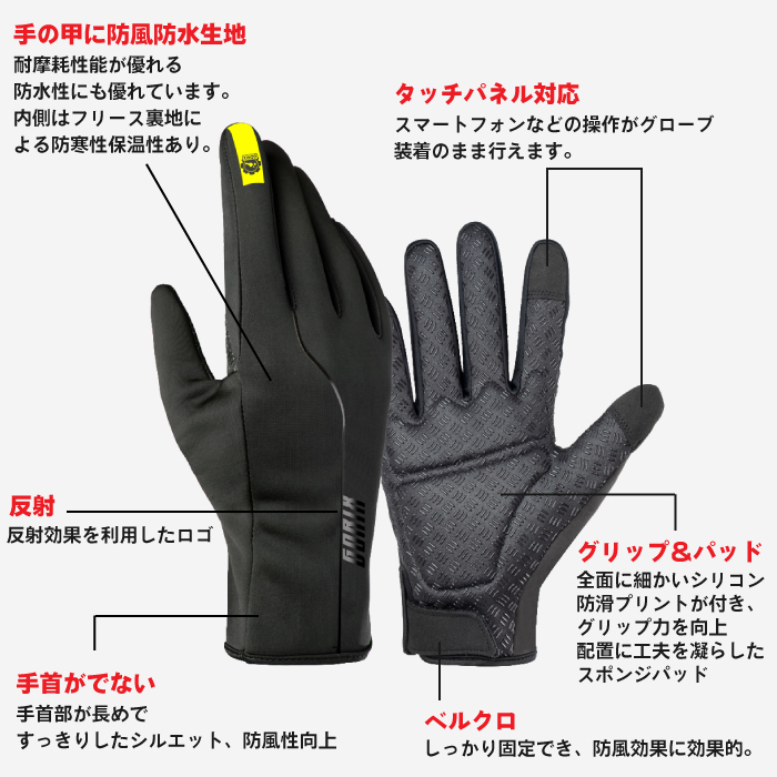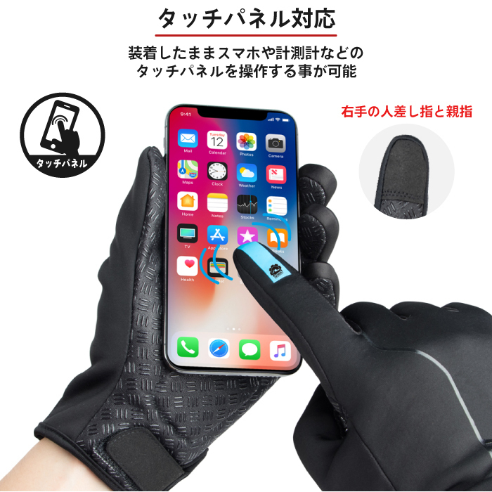 秋冬用グローブ 人指し指はタッチパネル対応なのでスマホやタブレット、サイクルコンピューターの操作も装着したまま行えます。 防水機能で急な雨でも水の侵入を遮ります。 雨や防風で体温を奪われたり、冷気によって手の温度を下げる事も軽減します。 グローブ内は裏起毛で保温 ・防水・防風・保温に優れています。 ・タッチパネル対応 ・静電気防止可能、洗浄可能、幅(約)5.5cmの手首 ・ベロクロ式でしっかり締めれます。 ・男女兼用 材質:ポリエステル、ライクラ 商品は入荷によりキズがある場合があります。 入荷時期により予告無く一部仕様変更する場合が有ります。 カラーはディスプレイ種類環境等により実物と異なって見える場合がございます。 |