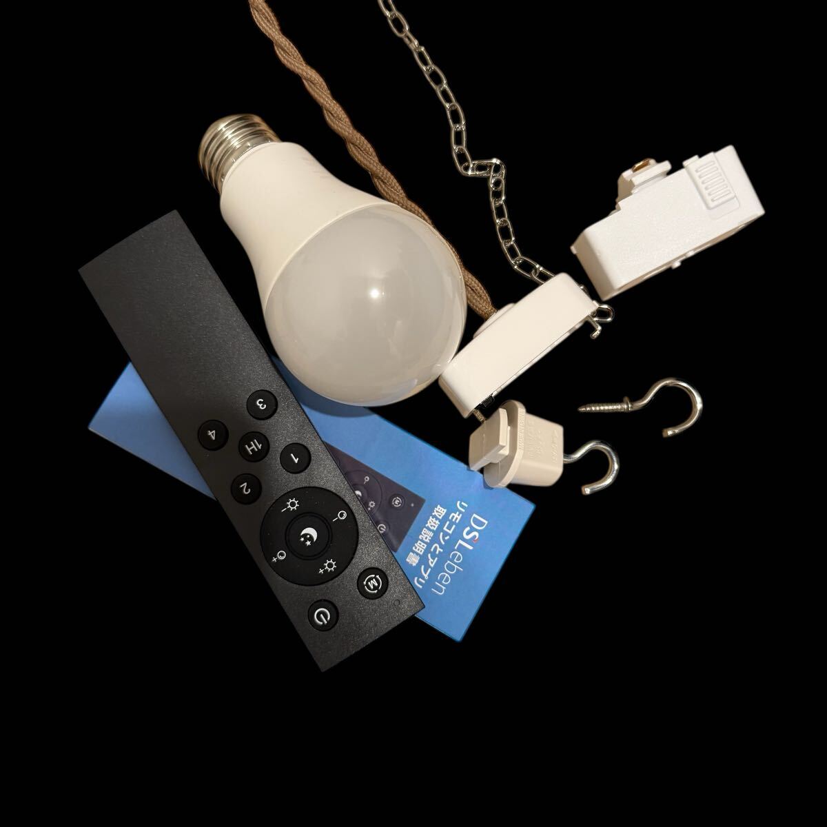 電球はリモコン操作でオン・オフができるLED電球で、電球色、昼白色の調光と明るさ調整ができるタイプの電球が付属します。和室は古い家はスイッチがないのでリモコンタイプの電球は便利です。