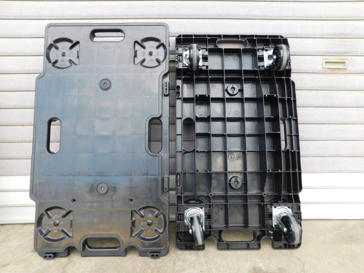 送料は下部送料表にて確認できる金額×2となりますのでお間違えない様ご注意下さい。 こちらの品は他出品物(同一物、同一形状の品を含む)との同梱発送はできません。 サイズ、形状の都合上、梱包は本体を重ねてバンドで十字に固定する程度の簡易なものとさせて頂きますのでご了承下さい。 キャスターは取り外し可能ですが、外した状態でも梱包サイズの縮小はできなかった為、そのままでの発送とさせて頂きます。 引取も可能です。(札幌市 詳細下部記載) 引取の場合、落札後必ず取引メッセージまたはお電話にて 引取希望日 時間 のご連絡を必ずお願い致します。 月曜~土曜(祝日、休業日除く) 10:30~18:00 での引取でお願い致します。 ※定休日、休業日等は自己紹介にて記載しておりますのでご確認下さい。 値引き、即決等の価格交渉、現物確認、直接購入はお受けしておりません。 ばら売りはお受けできません。 動作確認済み。 中古品につき、擦り傷、汚れ等使用感はございますのでご理解の上ご判断下さい。 ※複数個出品している為写真は一部使いまわしております。 状態はどれも同様となりますが傷、スレ具合等多少の個体差はございますのでご了承下さい。 外寸 680×390×125mm 耐荷重 120kg(均等荷重) 材質 PP 重量 2.76kg 積載面積 660×370mm キャスター φ75×4輪自在ナイロン車 その他商品詳細に関してはメーカーHP こちらまでどうぞ。 ※個別での詳細確認のご質問は回答できませんのでご容赦下さい。 出品内容は写真のもので全てです。添付写真にてよくご確認下さい。 必ず入札前に出品者情報の自己紹介文をご確認ください。 ※休業日等、記載されています。 状態は中古使用品の為、経年、使用に伴う小傷、汚れ見受けられます。添付写真にて確認下さい。 初期不良(ジャンク以外)、当方の記載ミス以外は基本的にノンクレームでお願いします。 | |||||||||||||||||||||||||||||||||||||||||