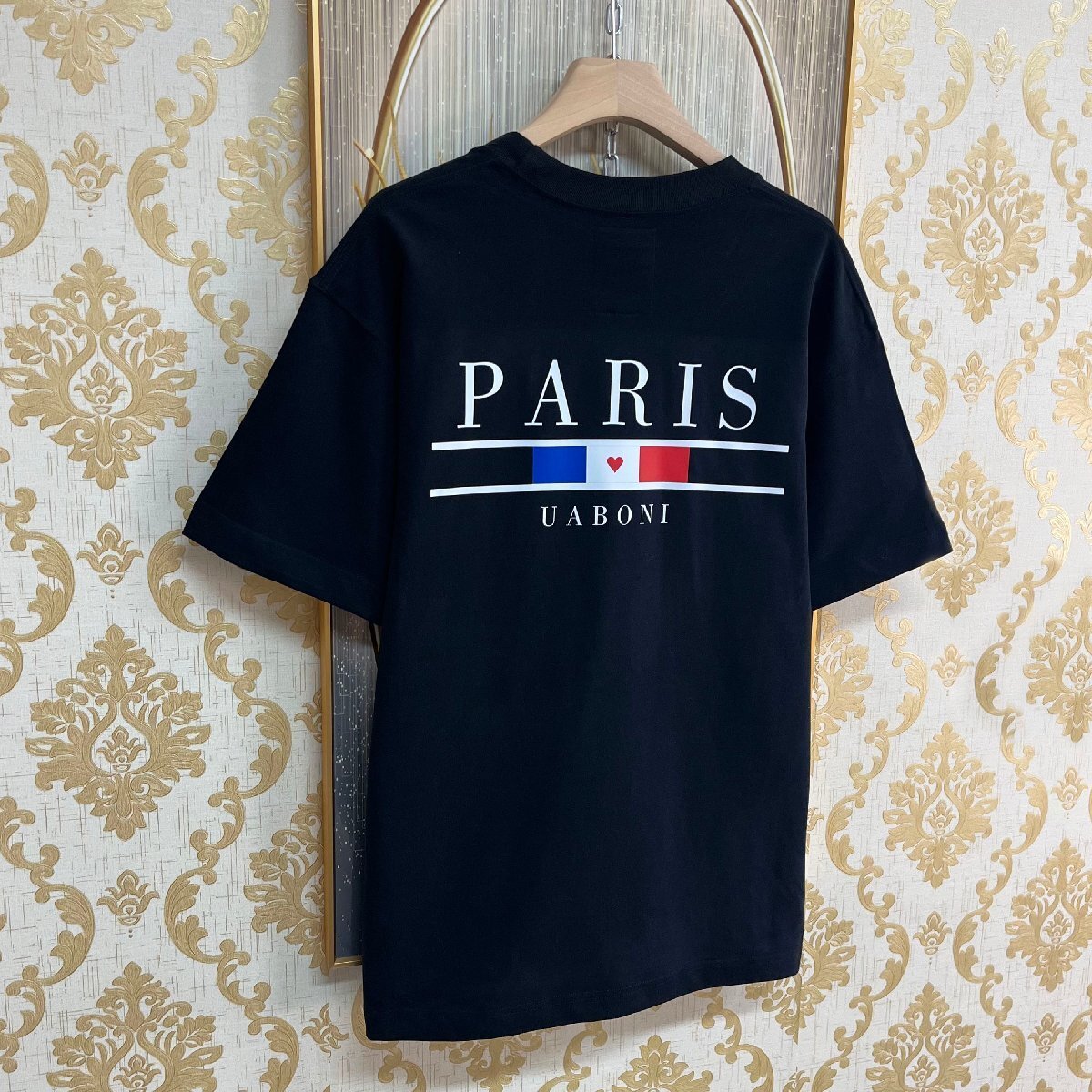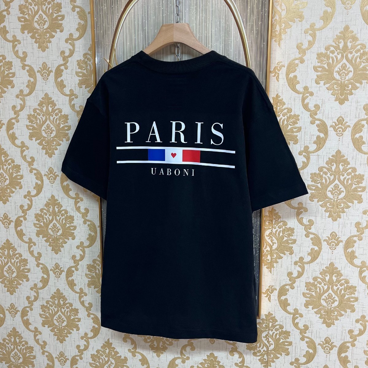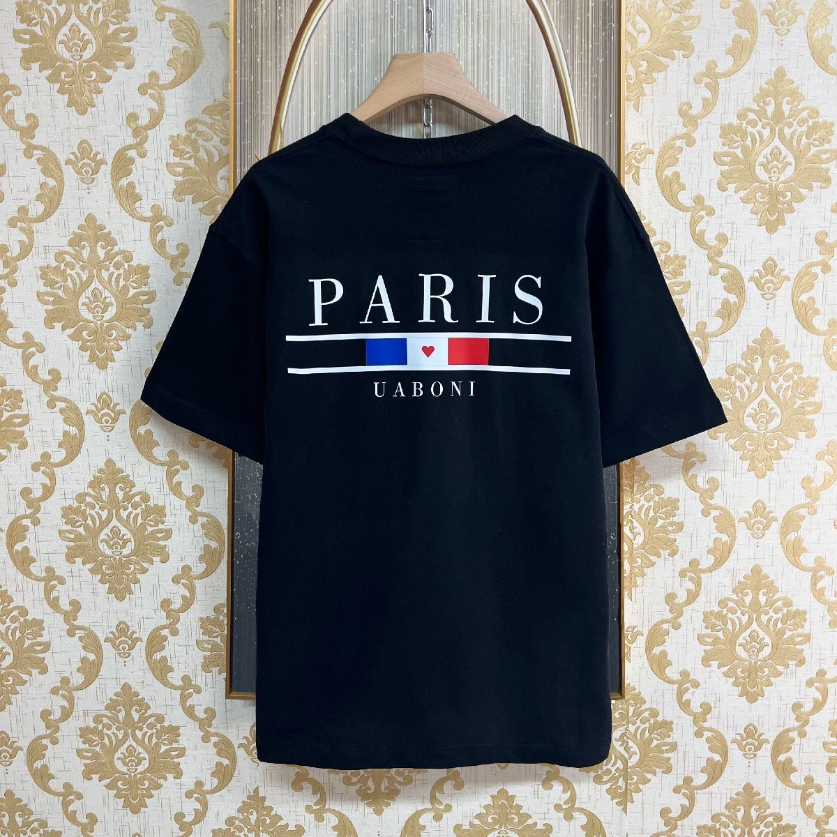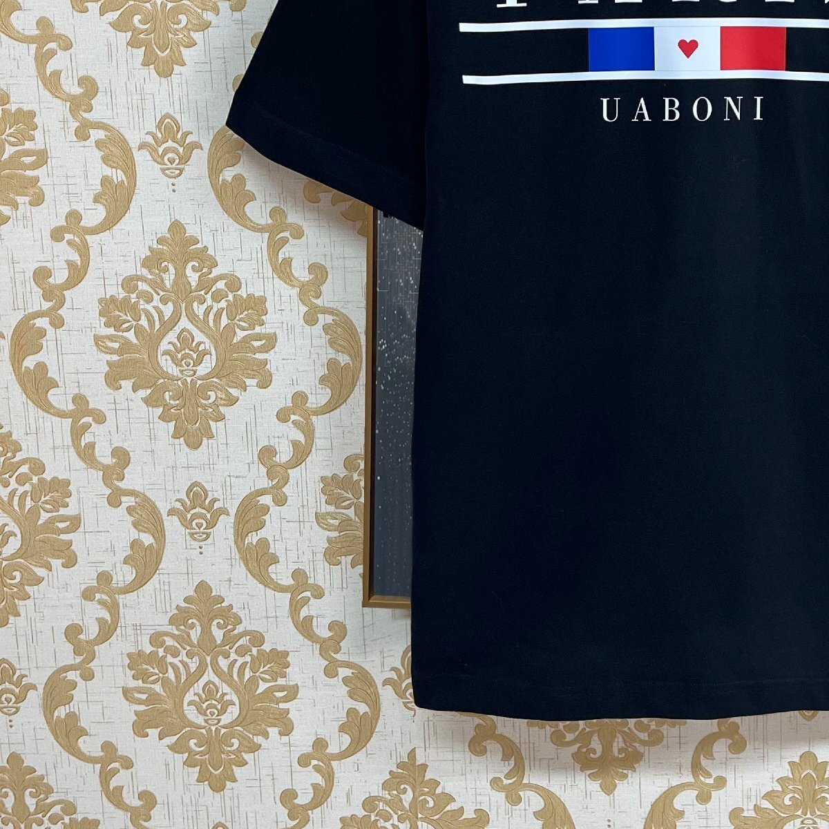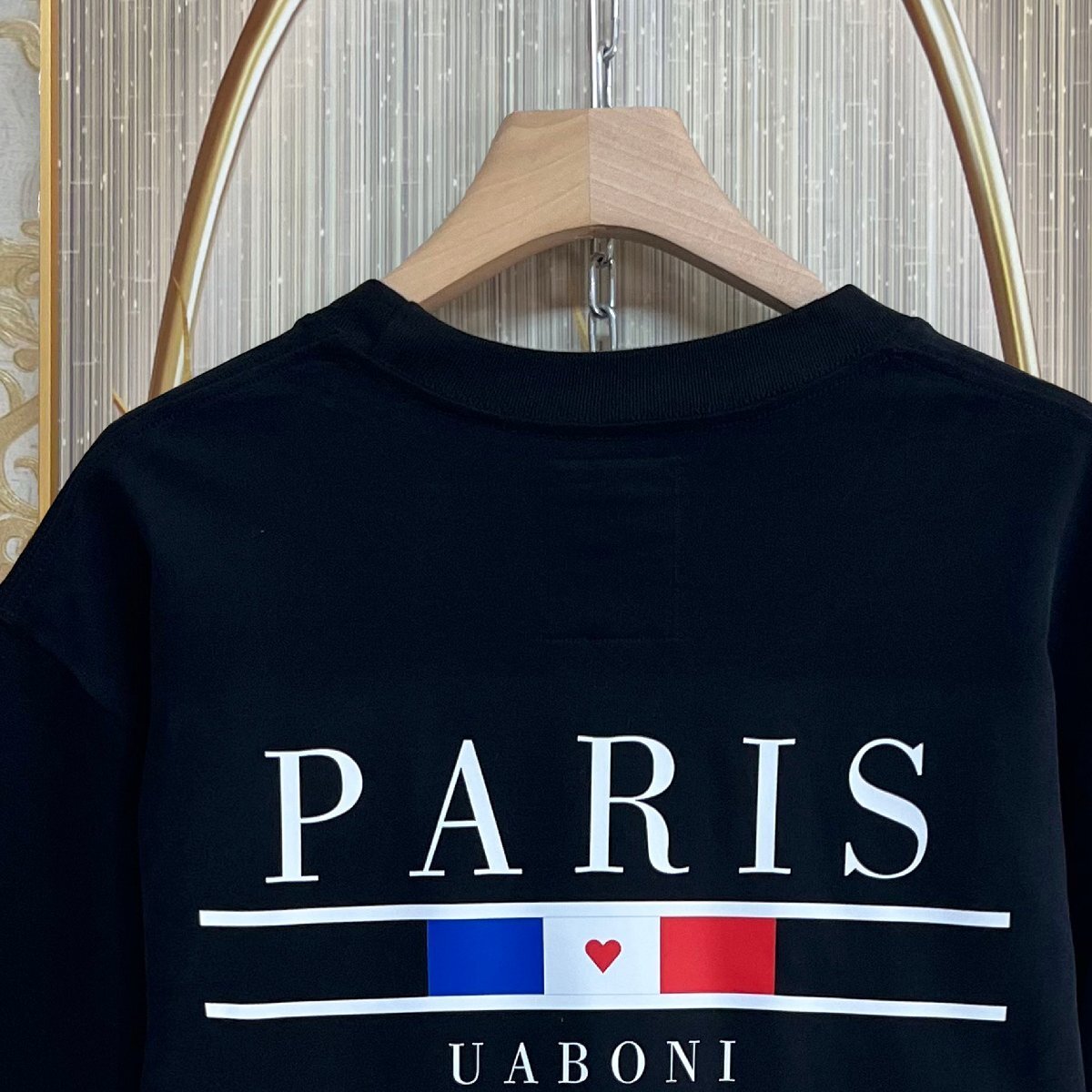 高級EU製&定価2万◆UABONI*Paris*半袖 Tシャツ*ユアボニ*パリ発◆綿100% 快適 ソフト カジュアル スウェット カットソー 街着 L/48サイズ
