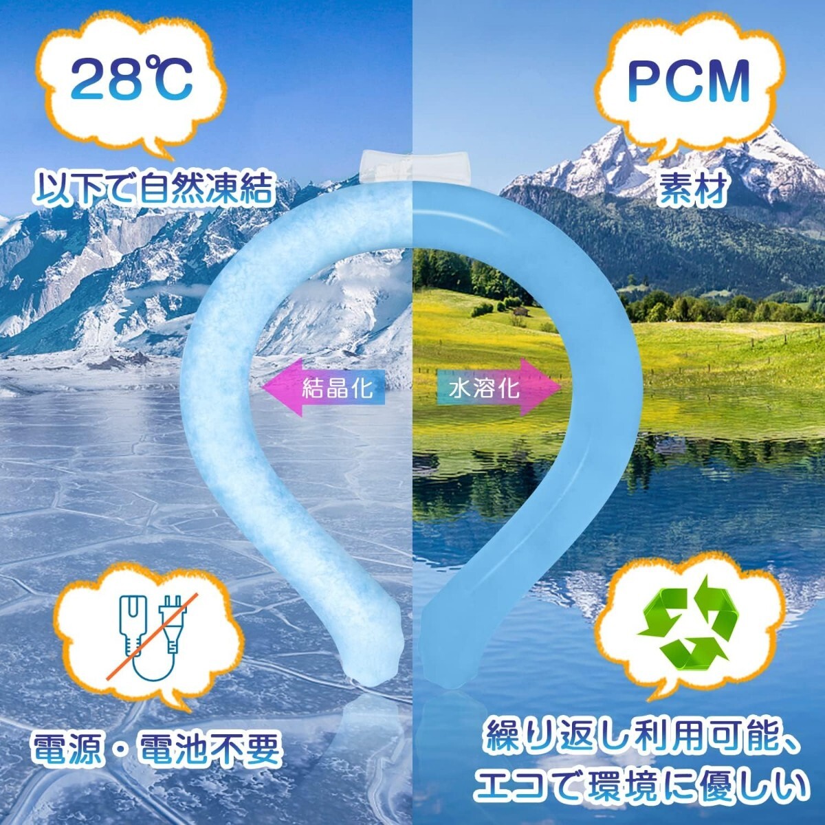 【28℃以下で自然凍結】クールリングの内側はPCM素材を使用し、熱吸収性に優れている暑さ対策の必須アイテムです。クールネックは28℃以下になると自然凍結し、電源・電池などが要りません。何度でも繰り返し使える環境に優しいエコグッズです。