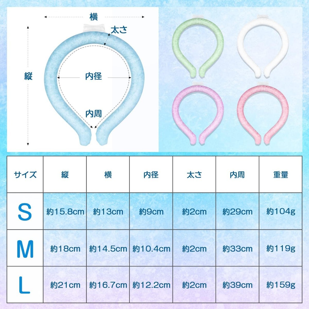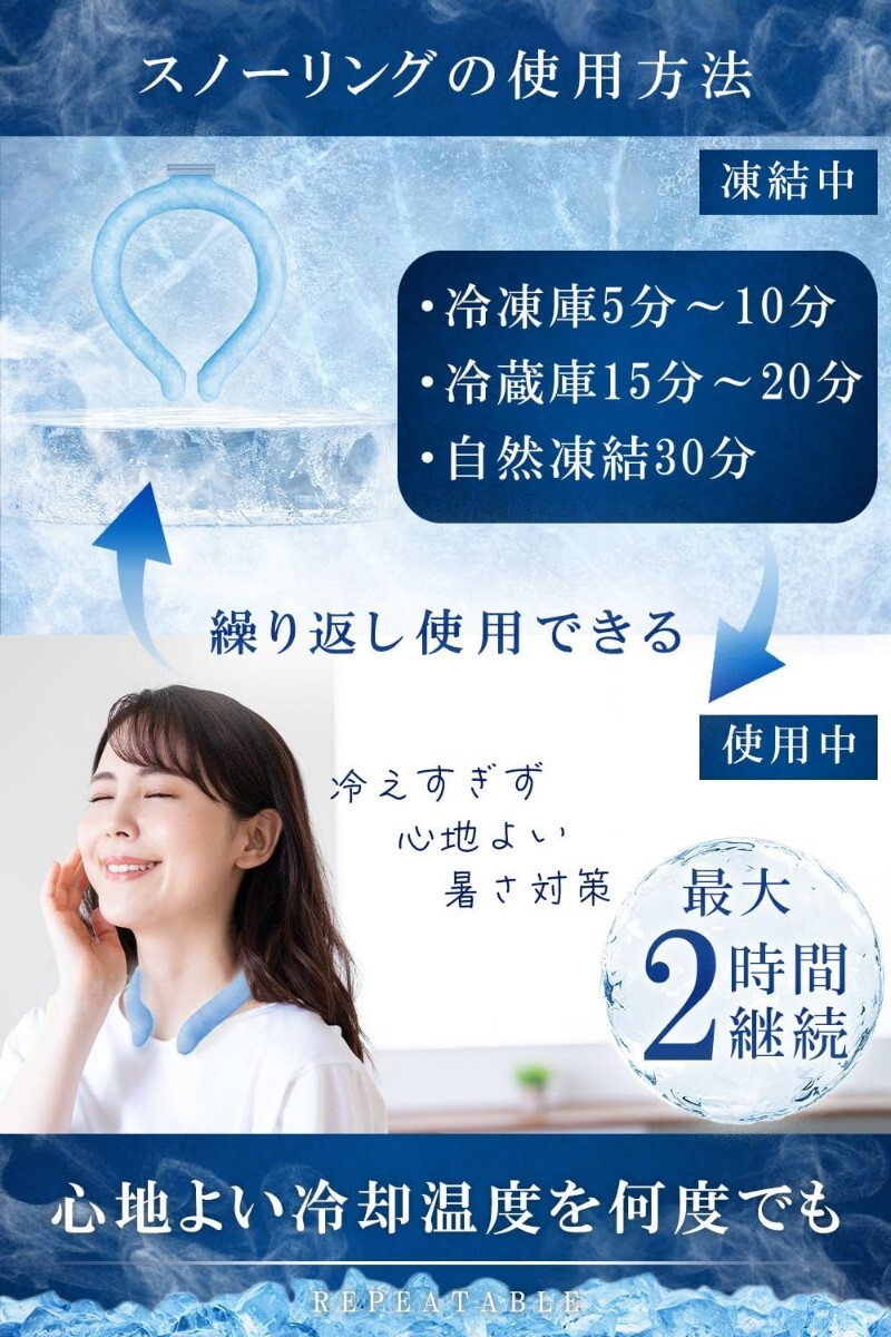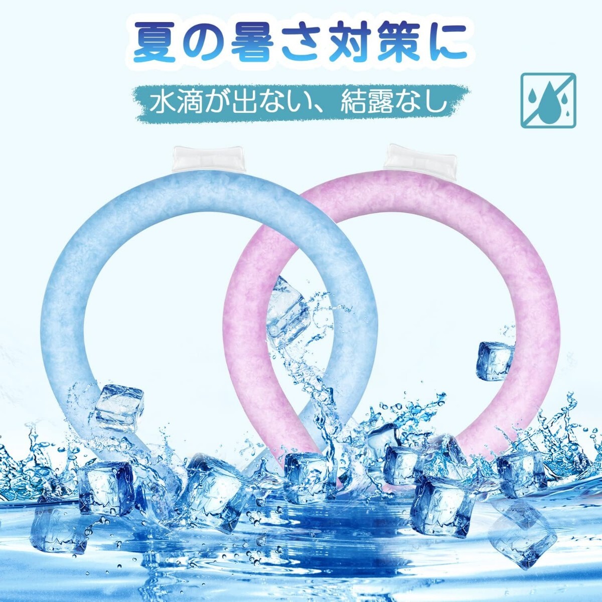 【快適なつけ心地】爽快リングの凍結温度が28℃で、人が一番快適に過ごすと言われている温度です。身体の熱を吸収している時に結露することがなく、首回りが濡れることがありません。軽量で使いやすいです。