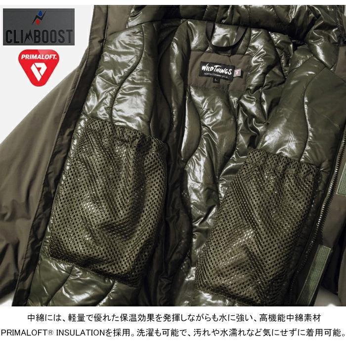 米国陸軍、海軍の寒冷地用防寒着に採用されているプリマロフトを使用し本来、アルパインクライミングや、南極の犬ぞりレースなど、寒冷地で行われてアクティブなアクションのために作られた防水透湿の表地に、保温性に優れた中綿を組み合わせたワイルドシングス最高峰の1着。