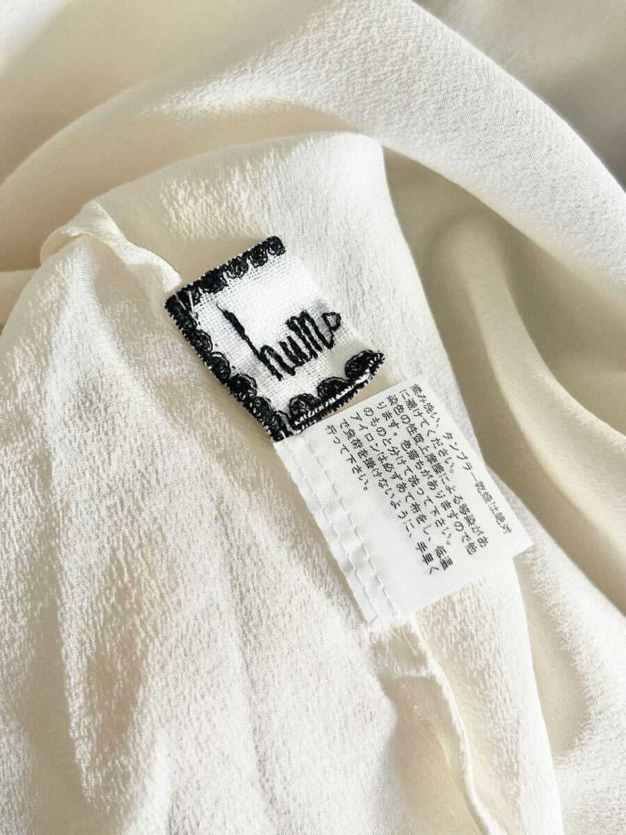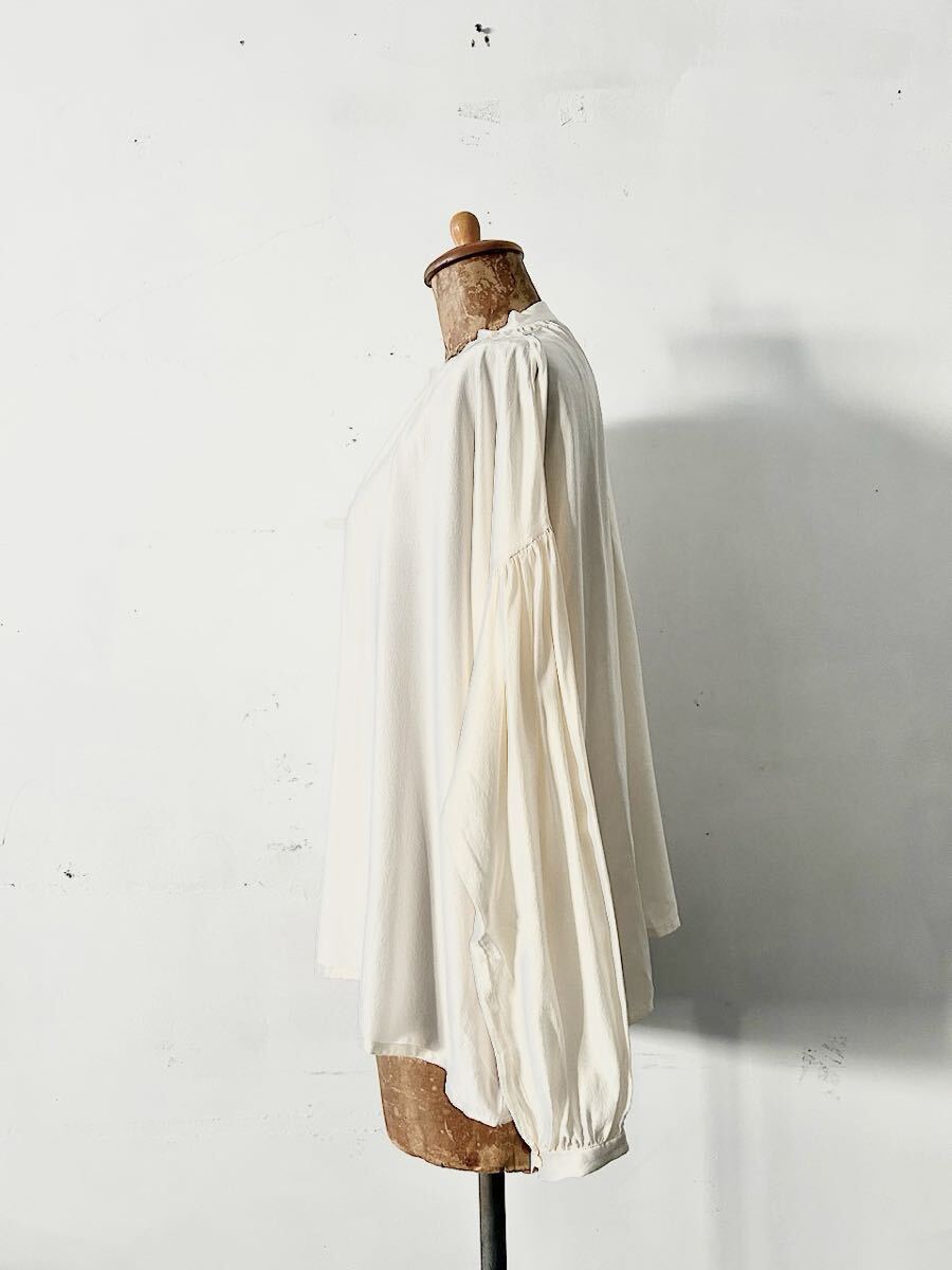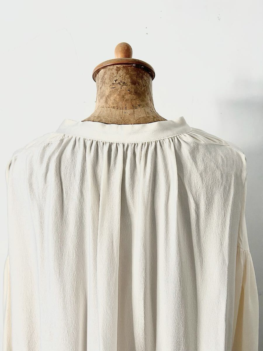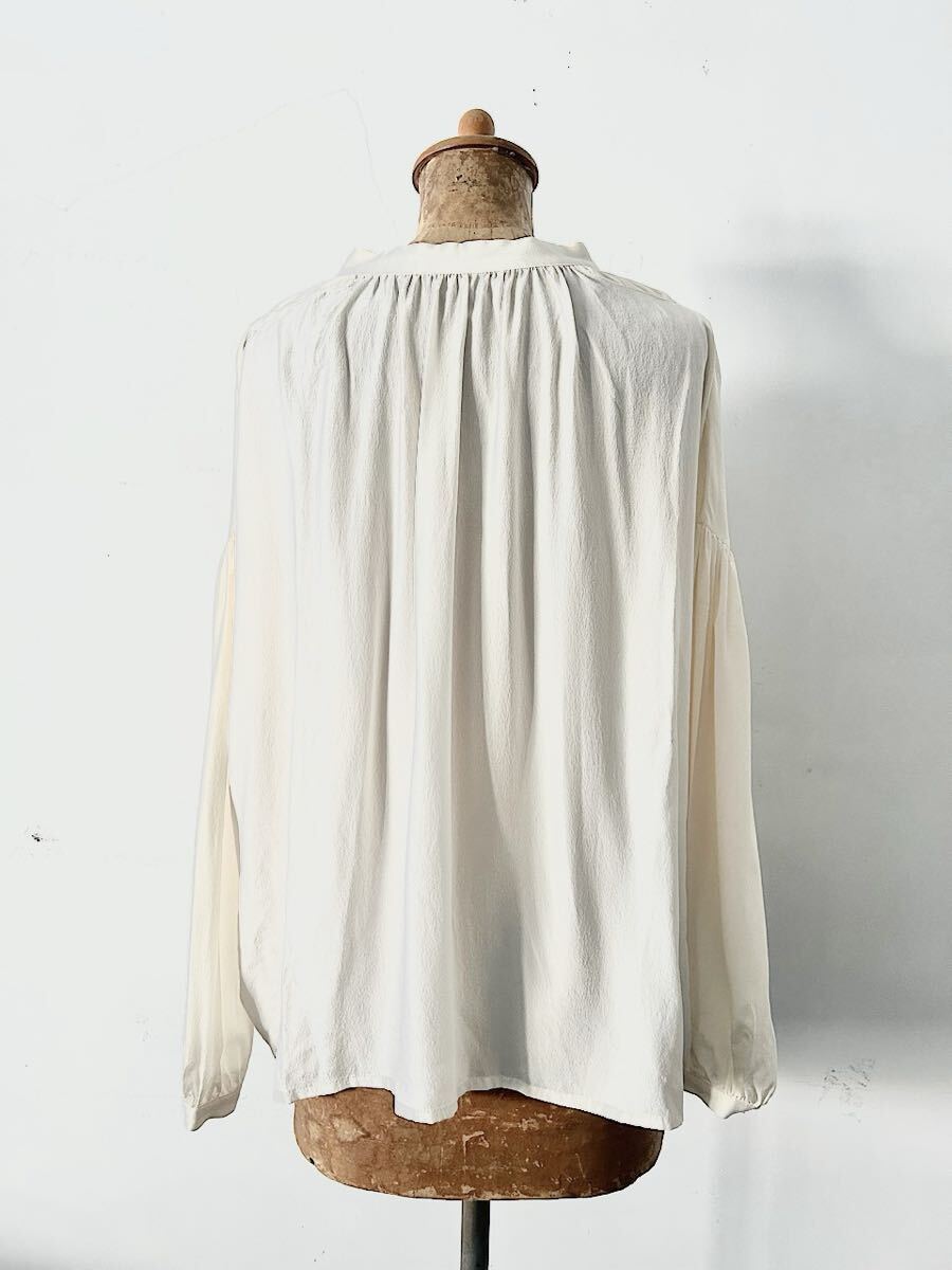 カラーはアイボリーでシルク100%素材のギャザーブラウスです。