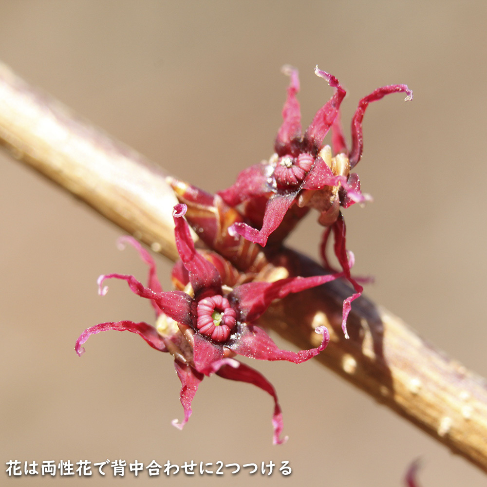 【商品情報】マルバノキは4mになる落葉低木です。日本が原産です。葉は丸みを帯びています。花は2つの花が背中合わせにつきます。丸みを帯びたハート型の葉を持っています。秋には美しい紅葉を見せてくれます。紅葉は葉の色が黄色く染まり次第に赤色に代わります。花は赤く色づいた葉が散り始めた頃に咲き始めます。マンサクのような形をした小さな2つの花が背中合わせに咲きます。シンボルツリーや庭木として人気があります。