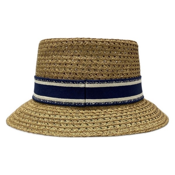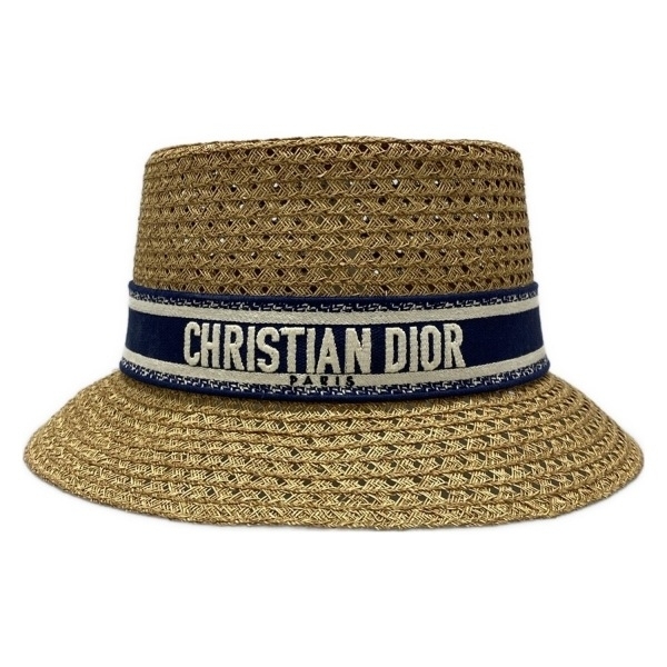 ディオール/クリスチャンディオール DIOR/ChristianDior ハット 59 34DBP923G153 - ライトブラウン×ネイビー×白 ストローハット 美品