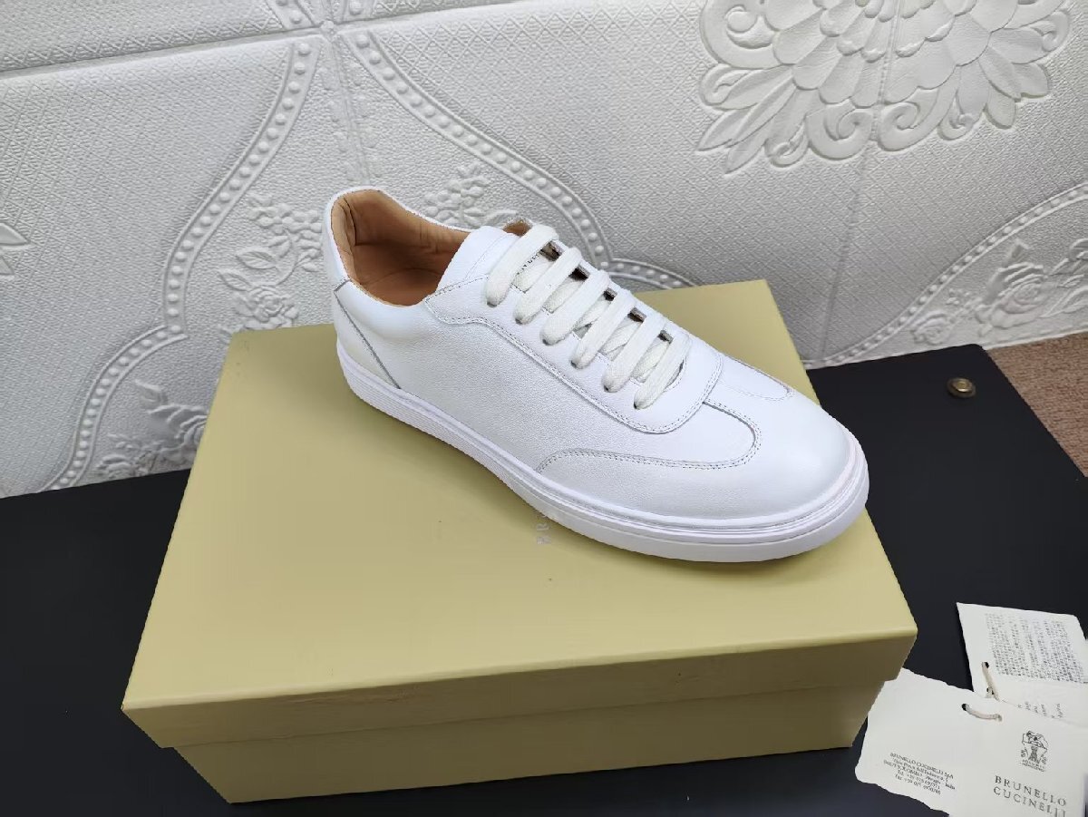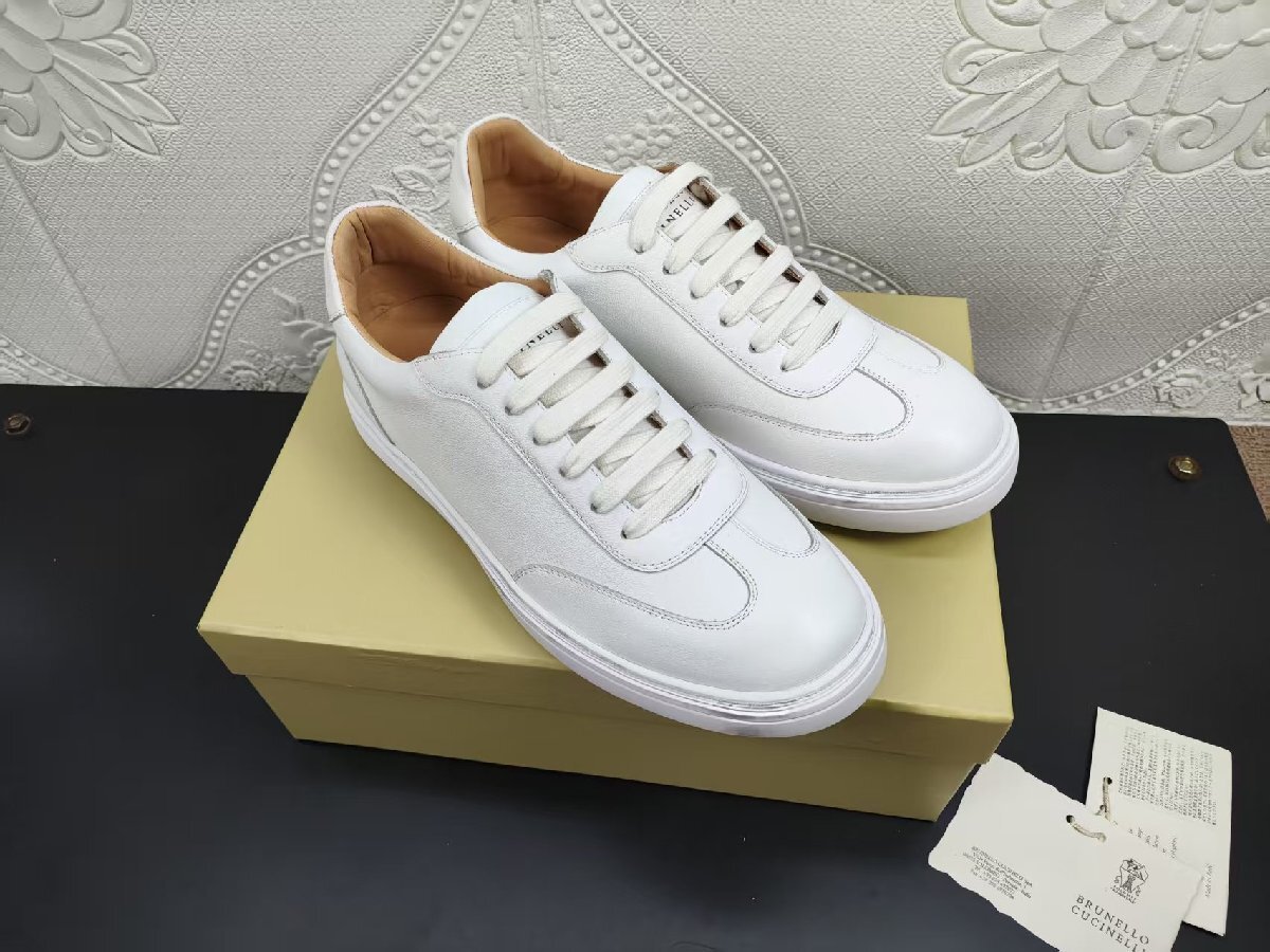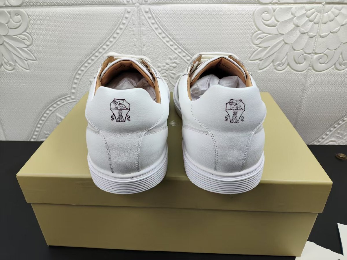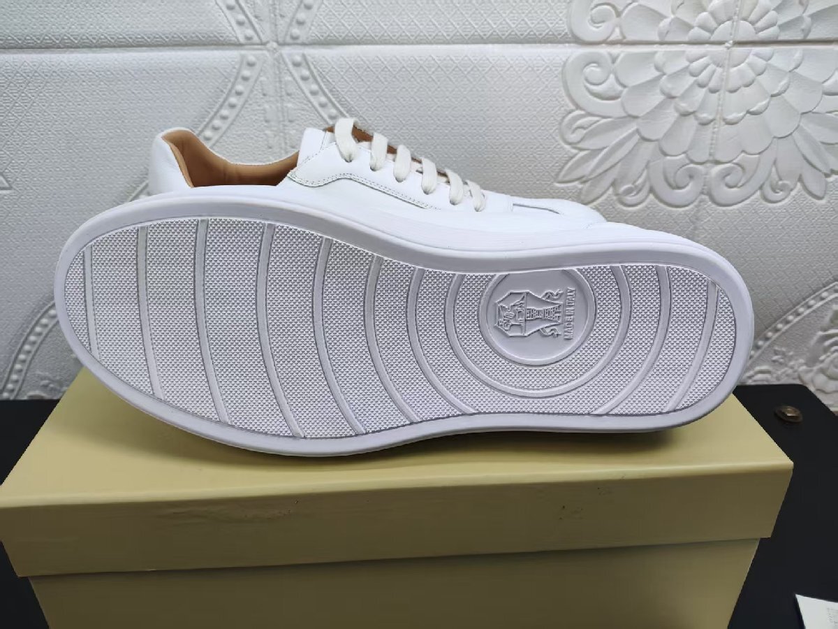 ホワイト25.5cm ●数量限定【送料無料】ブルネロ クチネリメンズ クラシックレザースニーカー, 本革枝紋