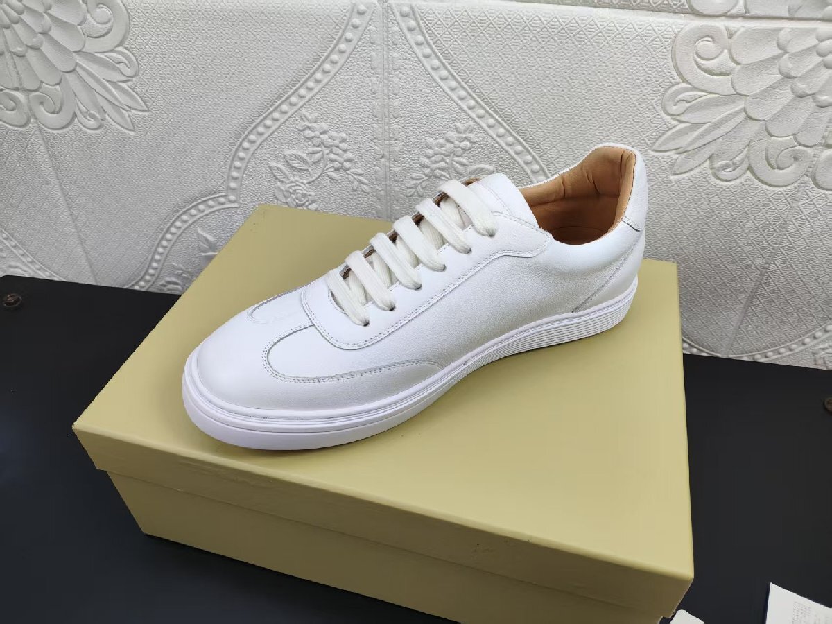 上質な本革を使用したクラシックなレザースニーカーです。シンプルでスタイリッシュなデザインは、カジュアルからビジネスカジュアルまで幅広いスタイリングに対応します。カラーバリエーションは、ブラック、ホワイト、グレー、ベージュの4色展開。サイズは39から46までご用意しております。アッパーには高級感のある枝紋レザーを採用し、内側には水染めの本革を使用することで、快適な履き心地を実現。白いソールとのコントラストが美しく、どんなコーディネートにも合わせやすいデザインです。靴紐は丈夫な平紐を採用し、しっかりとしたホールド感を提供します。クッション性の高いソールで、長時間の着用でも快適な履き心地を保ちます。ビジネスからカジュアルまで、様々なシーンで活躍する一足です。
