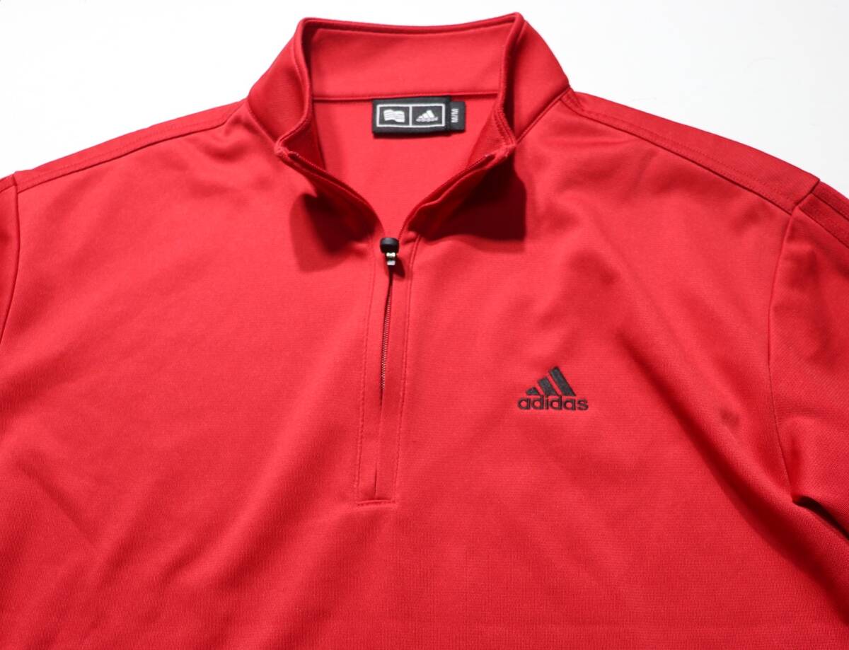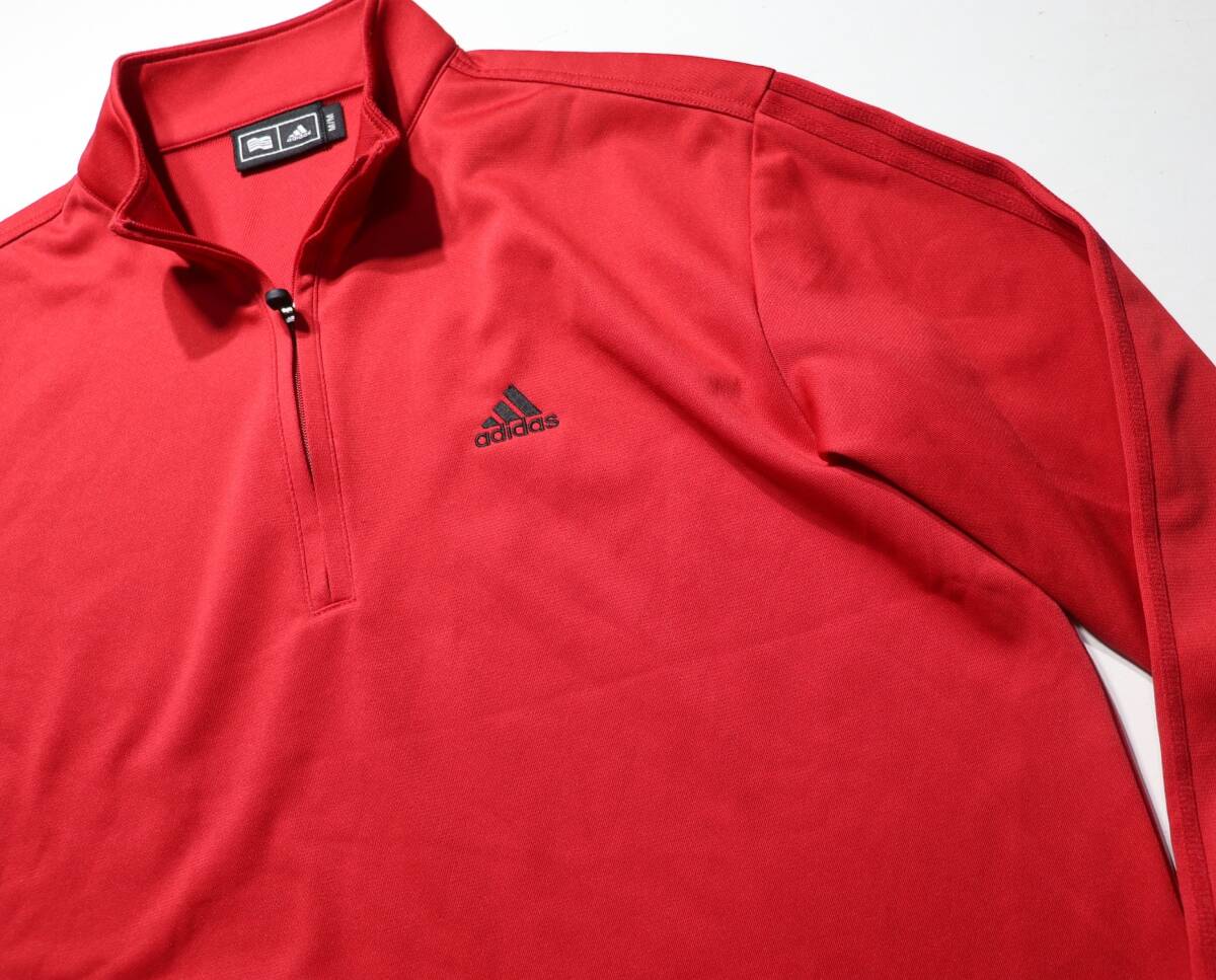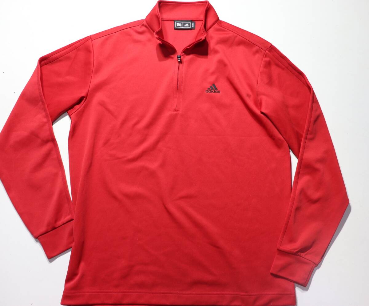アディダス▲ゴルフ▲長袖ポロ▲スタンドネック▲赤▲サイズM
