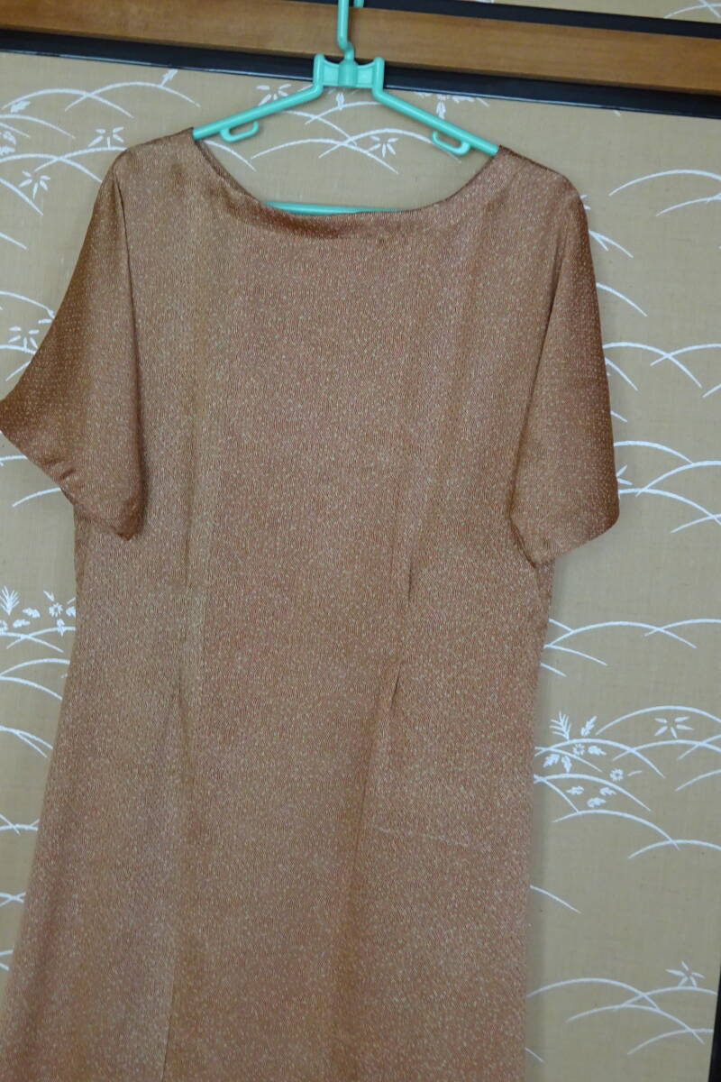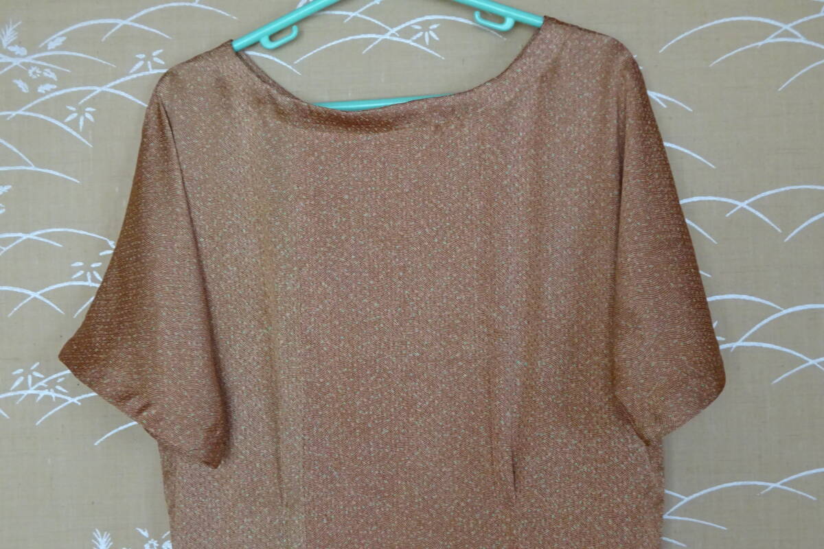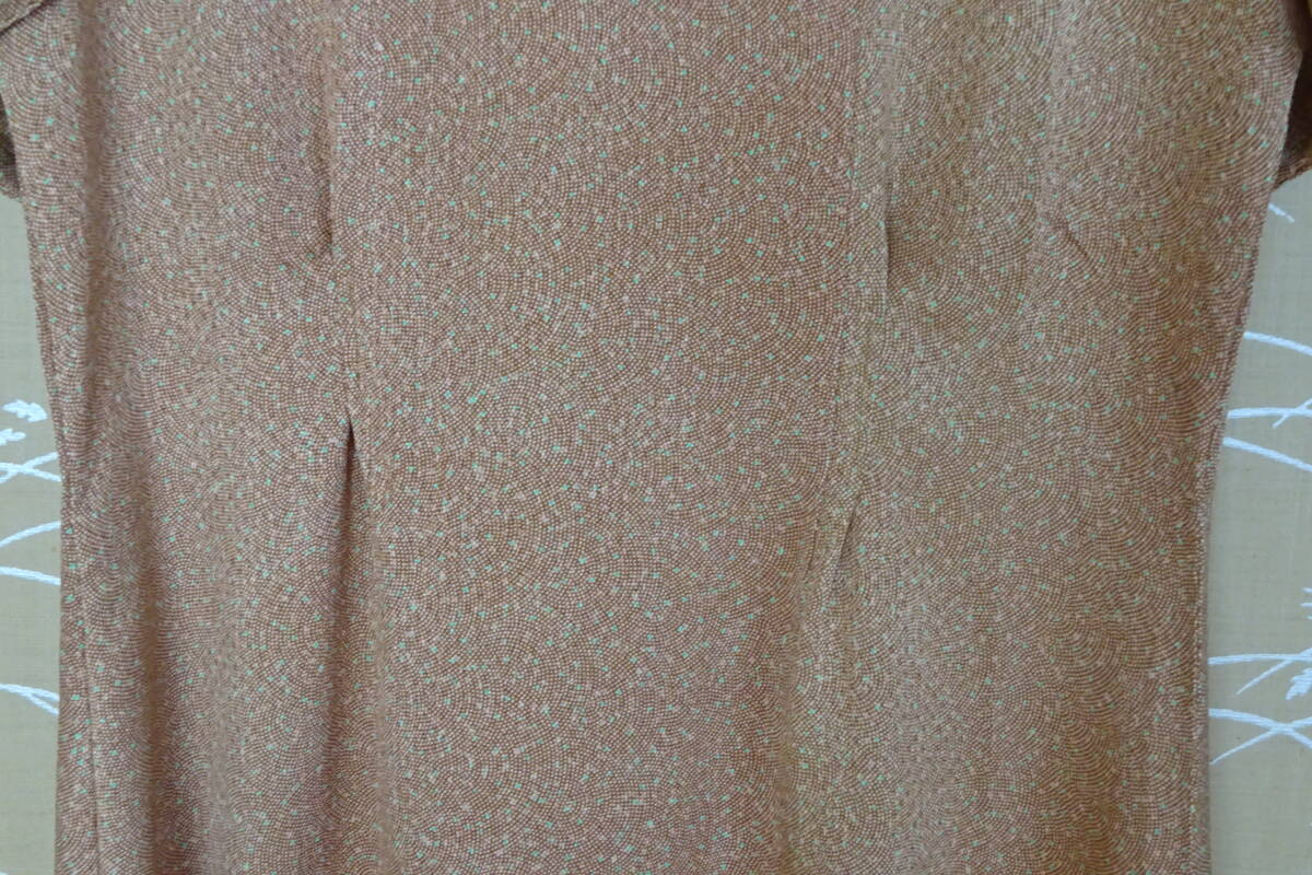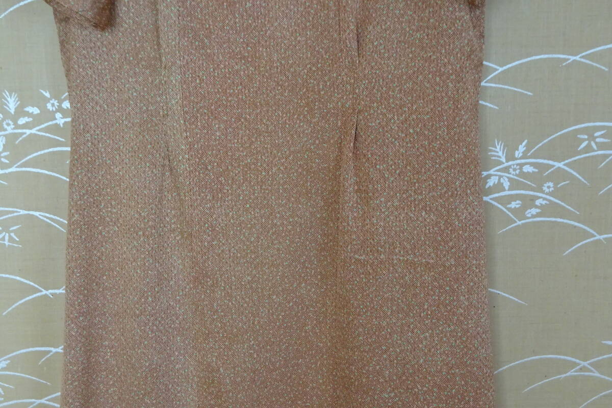 着物でリメイク  シルク鮫小紋さび朱のフレンチ袖ワンピース