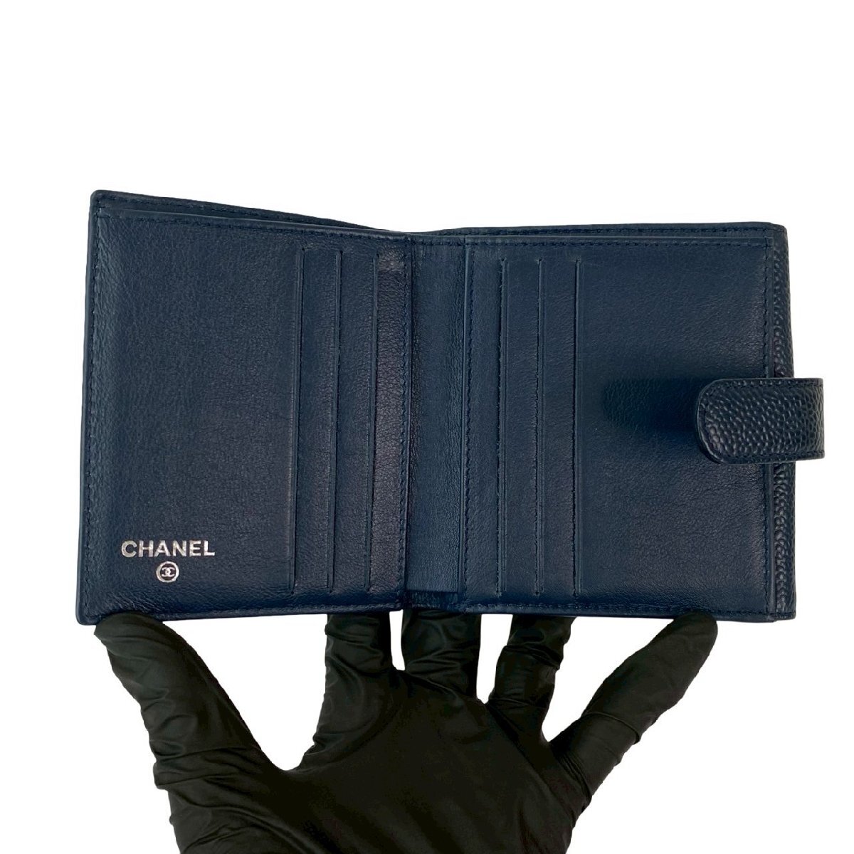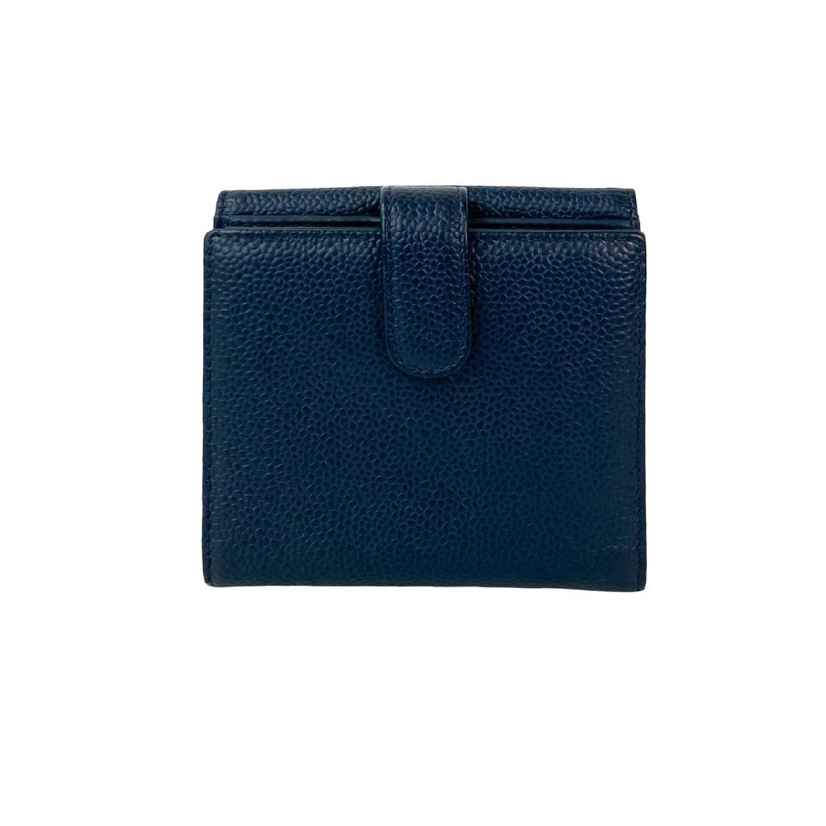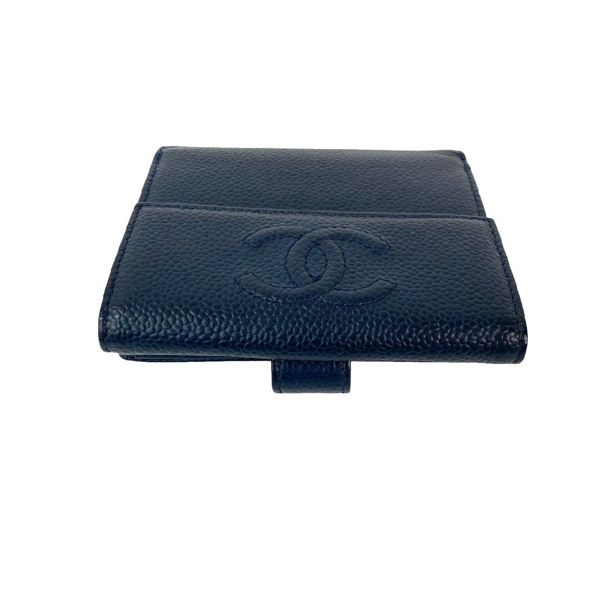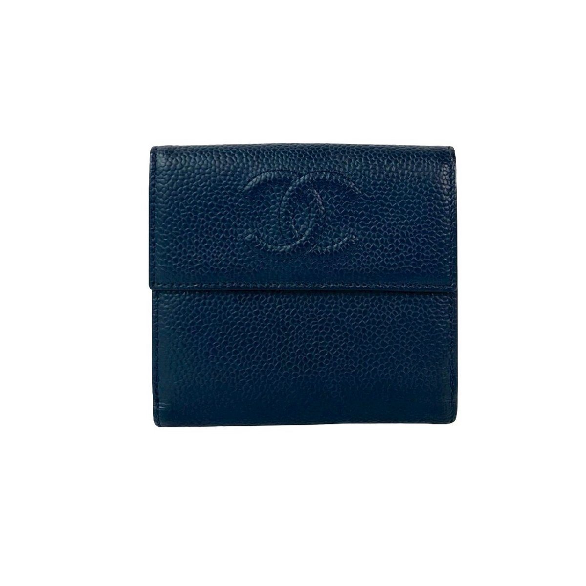 ほぼ未使用 カード シール有 16番台 CHANEL シャネル ココ キャビアスキン レザー 本革 二つ折り財布 ミニ ウォレット ネイビー 97793