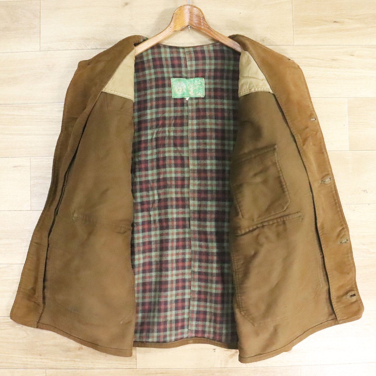 N12K/Y8.8-8 ユーロ古着 イタリア製 Confezioni Avvittive ハンティングジャケット カバーオール ピーチスキン 裏地チェック