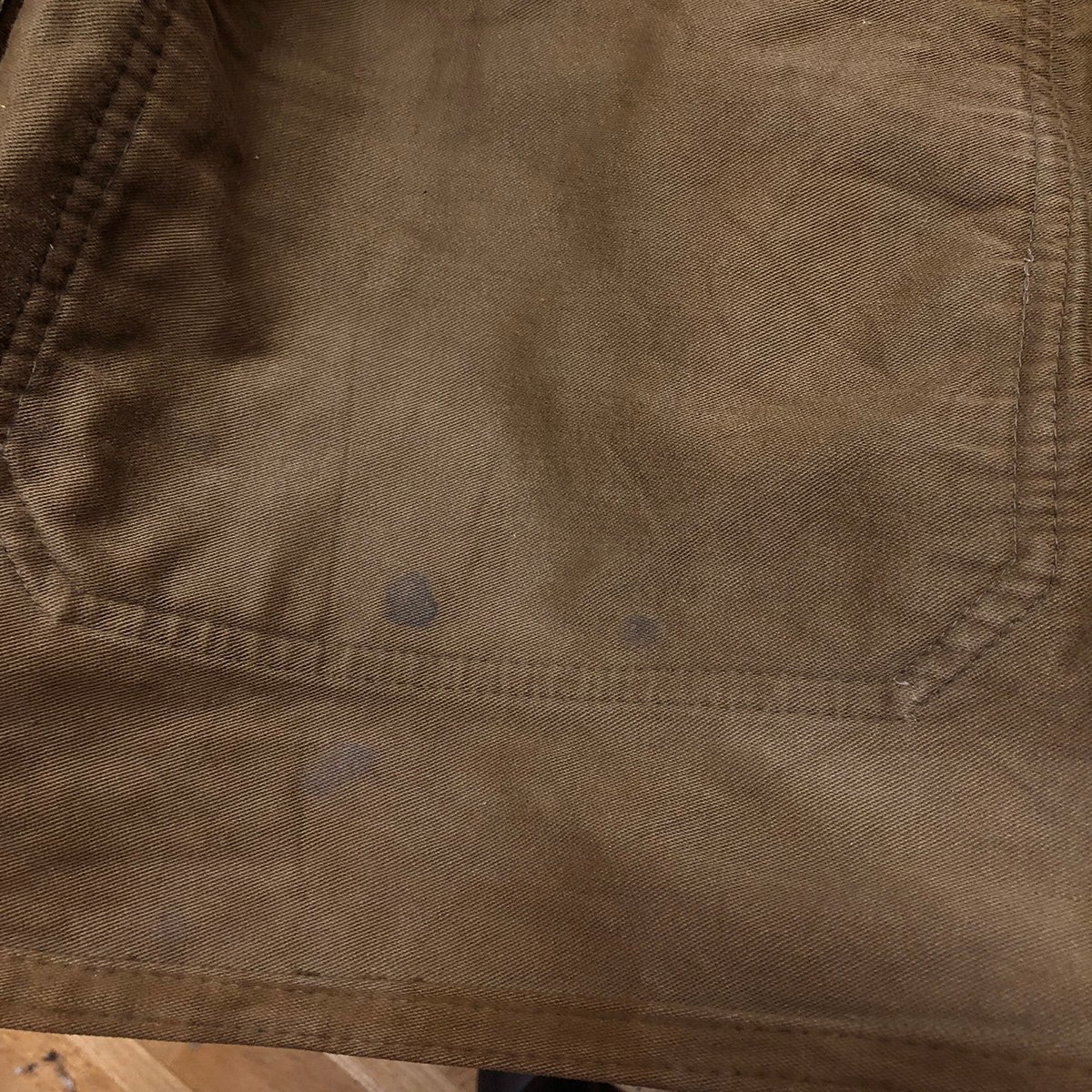 中古品です。使用感があります。両腕や裾やゲームポケット内などに汚れ、右肩にリペア跡があります。