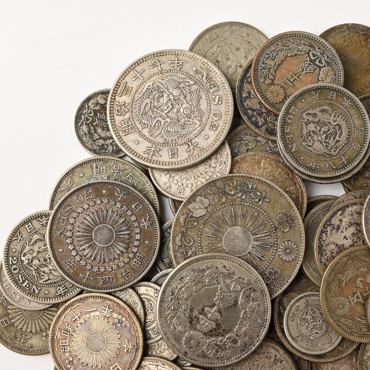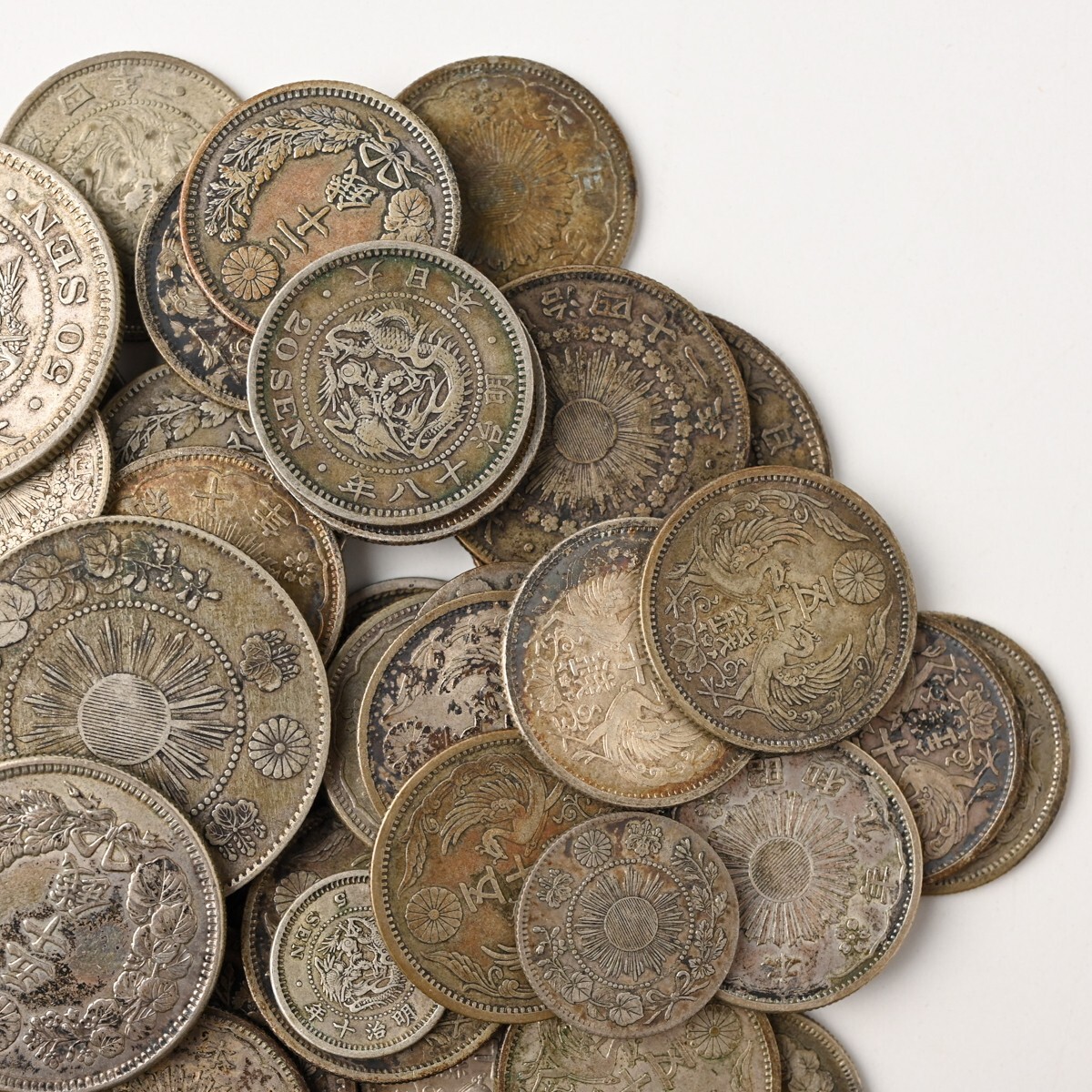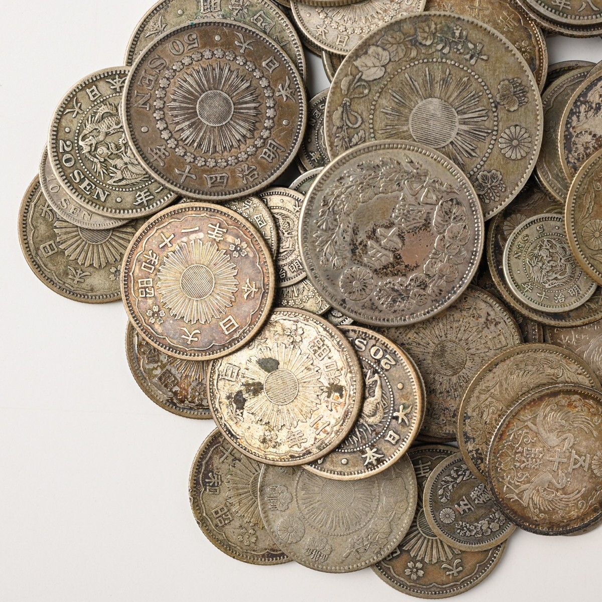 明治 大正 昭和初期 の五十銭 二十銭 十銭 五銭のまとめとなります。 【総重量】約351g ※写真に写っております秤は最小表示が1g単位のため、多少の誤差がございます。 ※枚数は数えておりませんので、図柄別、額面別、年代別の枚数などのご質問にはお答えいたしかねます。 状態は写真でご確認ください。 また商品は写真に写っているものが全てです。 ただし、乾電池・電球・比較用の急須や花瓶、家具などを載せている台車、分類用のプラスチックケースなど付属しないものが写っている場合がございます。 付属するか気になるものがあります場合は必ずご入札前にご質問ください。 商品のサイズ・状態説明は原則記載しておりませんので、 写真をよくご覧の上、サイズなど気になる点や不明な点がある場合は入札の前に必ずご質問ください。 特に 機械類・精密機器等は商品説明をよく確認していただき、ご質問・ご入札をお願いいたします。 ※専門外の商品もございますので、お答えできる範囲には限りがあります。