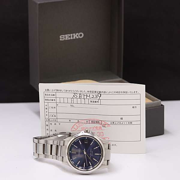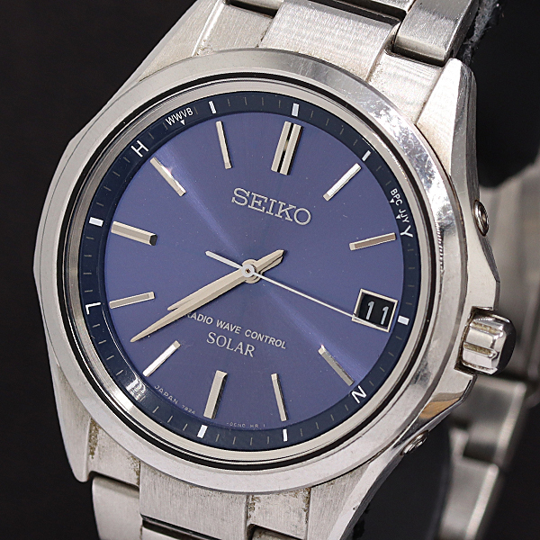 1円 保/箱付 稼働 セイコー ブライツ 7B24-0BN0 電波ソーラー ブルー文字盤 メンズ腕時計 1927000 10NGB MST