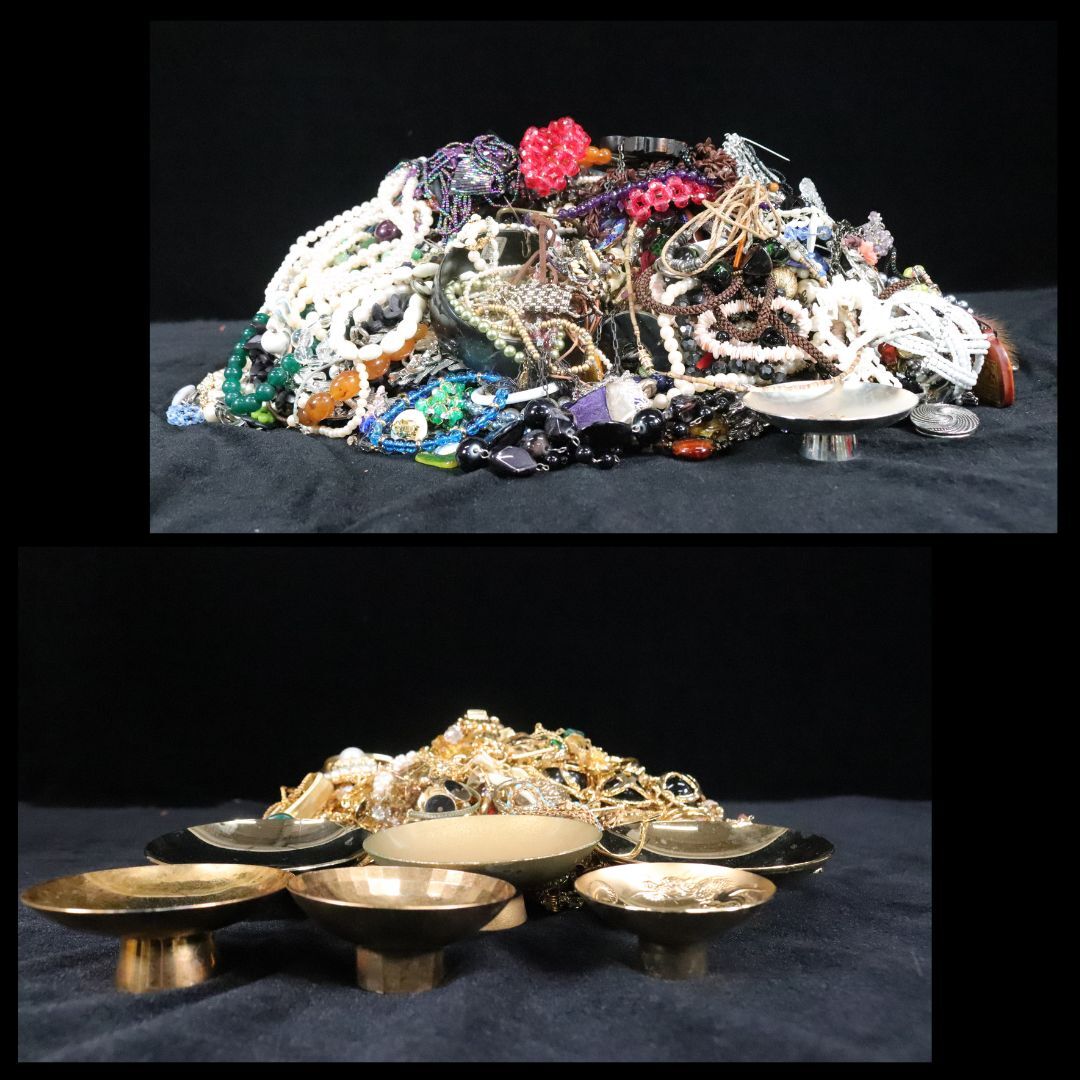 | 商品説明 | ★最後までお読みいただき、ご理解の上でのご入札をよろしくお願いいたします。 【FO120】 【イミテーションまとめ】 総重量約14kg ジュエリー 色石 天然石 ゴールドアクセ ネックレス ブレスレット 等 【商品状態】 ひとつずつ検品・梱包は行っておりません。 まとめ品の中にジャンク品を含む可能性があります、ご了承ください。 多数商品がある場合、傷や汚れを写真に載せきれない可能性もございます。 あらかじめご理解・ご了承の上入札をお願いいたします。 また、細かくクリーニングしている訳ではありませんので 状態を極度に気にされる方、神経質な方は入札をお控えください。 ■写真に写るもののみの販売となります。 写真にないものは付属いたしません。 画像をご確認の上、商品の状態に納得して頂いた方のみ入札をお願いいたします。 【取引ナビの対応日時】 ■平日9:00-17:00となります。※土日祝日は休業 【発送方法】 発送は佐川急便よりお送りいたします。 原則ご入金後、発送まで3日~7日お時間を頂いております。落札商品の量によって発送までのお時間が前後してしまう可能性があります。商品をお急ぎの方はご注意ください。 ※発送元地域が異なる商品の同梱はできません。 また土日祝日はヤフオクの取引全般をお休みしておりますので発送/連絡はできません。いつ頃発送するのか等の催促はおやめください。 ※沖縄・離島の方は【中継料】が発生し送料が高額になります為、佐川着払いとなります。 ※中継料が発生した場合、追加で中継料分の不足送料を請求させて頂きます。必ずご自身のお住まいをご確認頂いてから入金をお願い致します。 【直接引き取り】 引き取り場所は東京都八王子市になります。 詳しいご案内場所は落札後、取引ナビにてご連絡いたします。 受付時間:平日9-17時 ■手順 ① 取引情報の入力 ② yahoo!かんたん決済で支払うをクリック ③ 配送方法を直接引き取り0円を選択し決済を行ってください。 ④ 取引メッセージに 直接引き取り希望と、希望日、希望時間帯をお知らせください。 後程、ご案内の通知をいたします。 【注意事項】 ■発送連絡と同時に評価も入れております。評価不要の方はご落札時にメッセージでお知らせください。 ■商品到着後、破損があった場合は配送業者へ一度ご連絡をお願い致します。 ■発送方法の変更はお受けできません、また送料に納得がいかないままの入札はご遠慮ください。 ■商品到着後7日以上経ってからの返品・返金は対応出来ません。品物が到着次第すぐに商品の状態をご確認ください。 ★他にも沢山の商品を出品しております。 ご興味のある方は、他の商品も是非ご覧下さい。