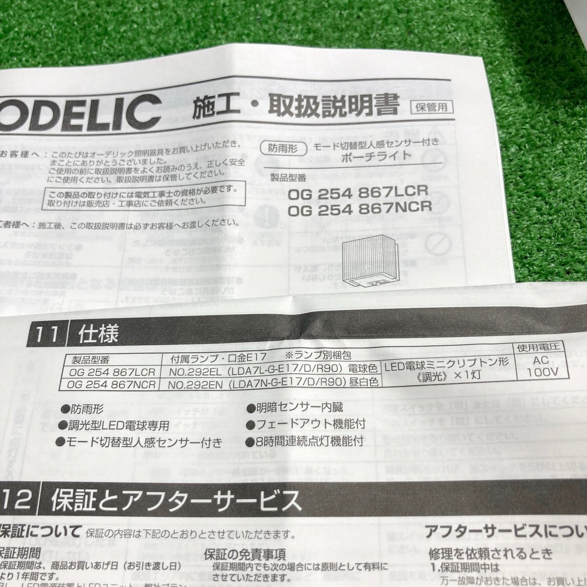 | 商品 | オーデリック 2022年製 LED ポーチライト 「OG254867」 ■防雨型 屋外用 モード切替型人感センサー付 明暗センサー内蔵 取説あり ☆計2点 ☆新品☆ |