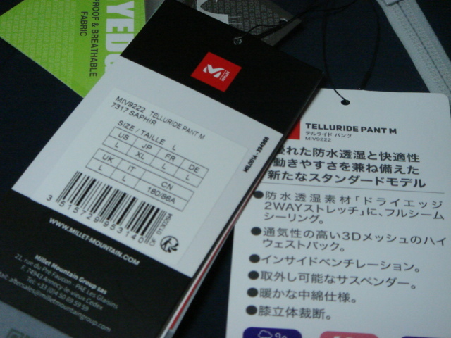 MILLET ミレー テルライド パンツ サイズL(JP XLサイズ)、未使用品です。