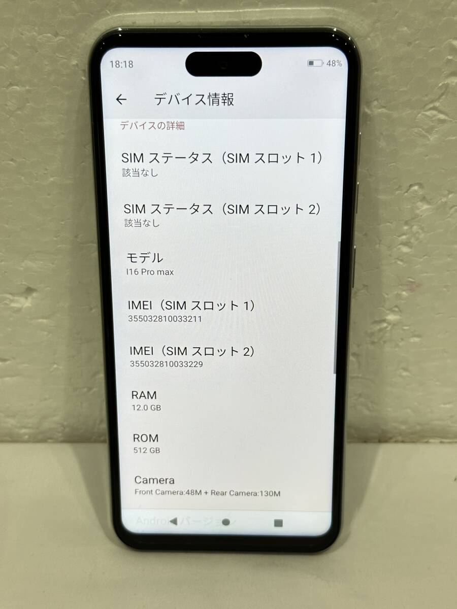 A300_ 中華スマホ I16 Pro 12GB RAM 512GB ストレージ Andorid 14 ネットワーク判定-