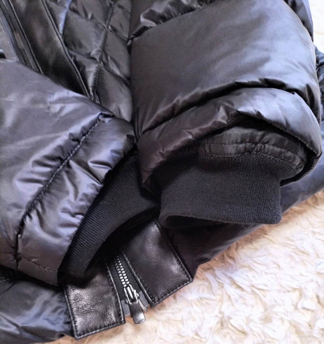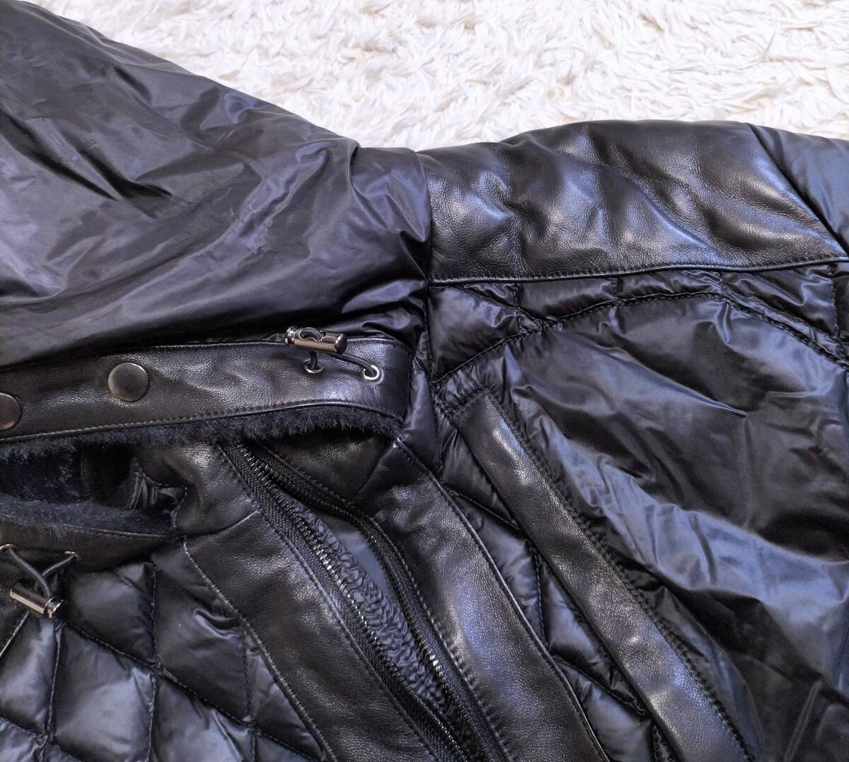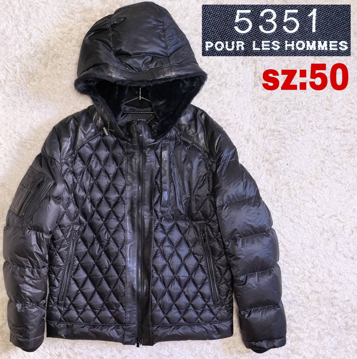 【大きいサイズ50★】美品 5351 POUR LES HOMMES ダイヤキルティング ダウンジャケット 黒●羊革 ラムレザー切替プールオム (10ハ)