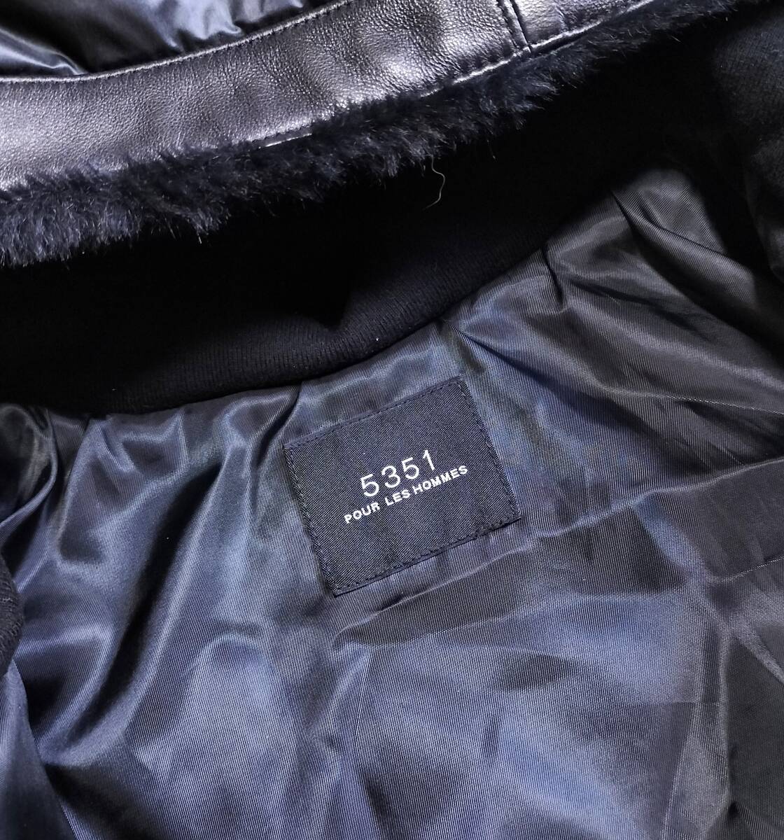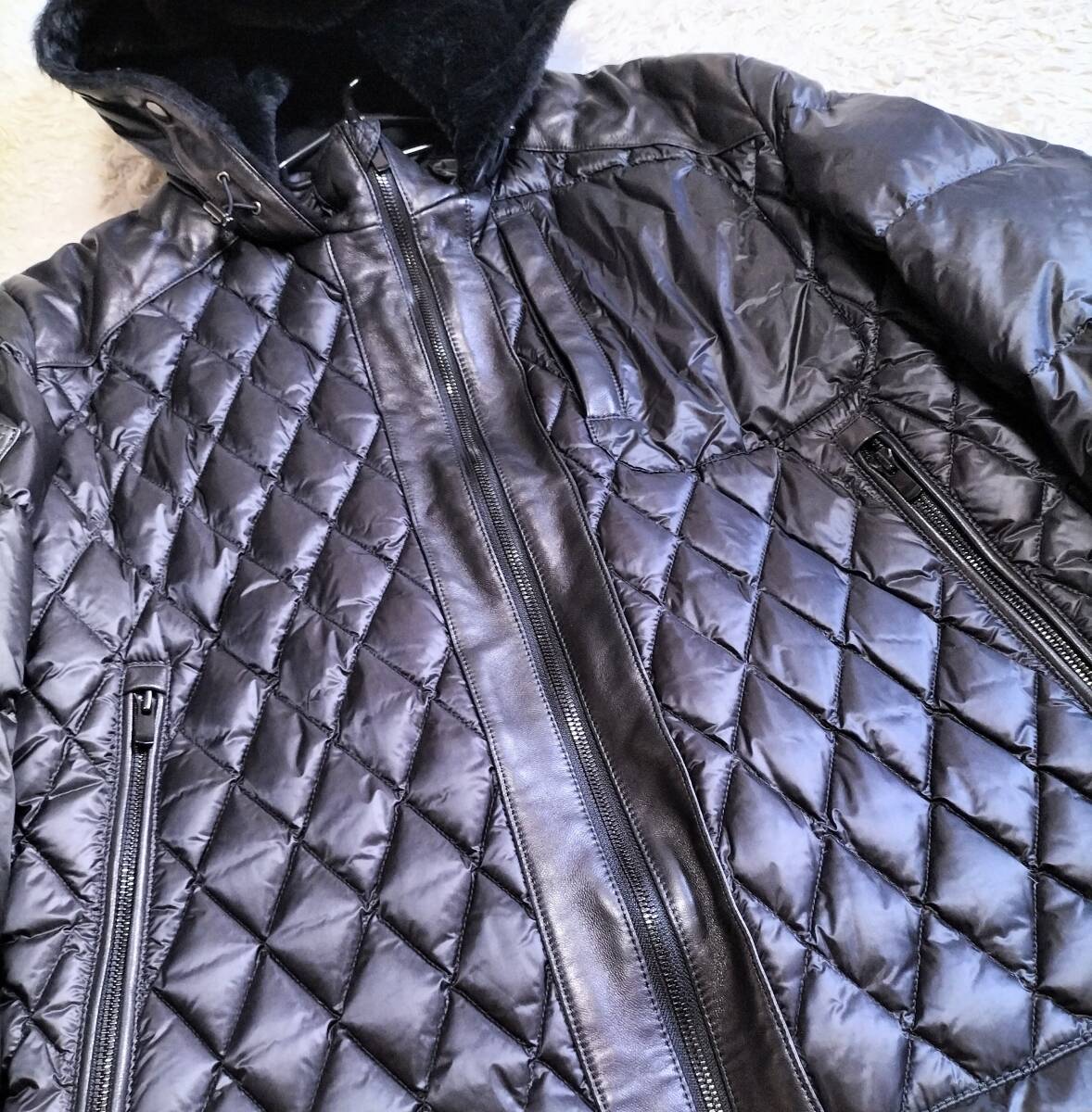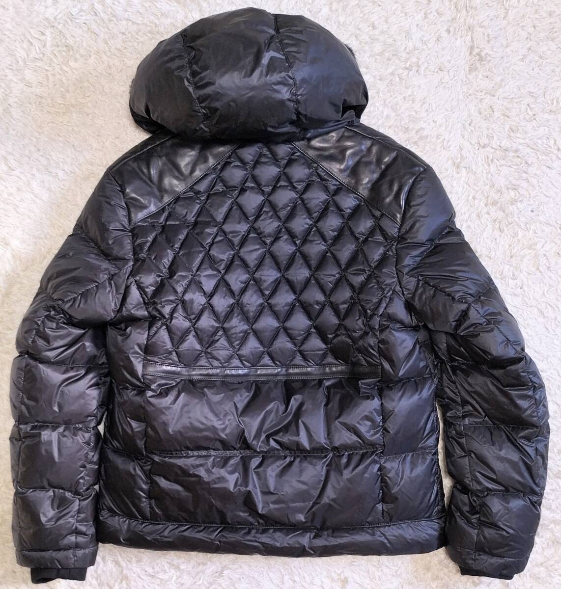 【大きいサイズ50★】美品 5351 POUR LES HOMMES ダイヤキルティング ダウンジャケット 黒●羊革 ラムレザー切替プールオム (10ハ)