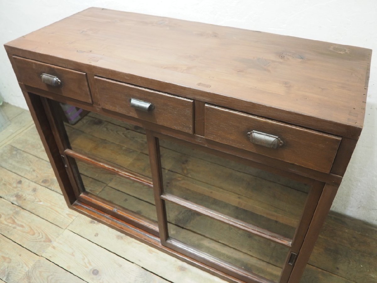 タ荷X1435◆H94cm×W121cm◆アンティーク◆大きい木製ガラスケース◆飾り棚 収納棚 展示台 カウンター テーブル レトロR(ヤD)松
