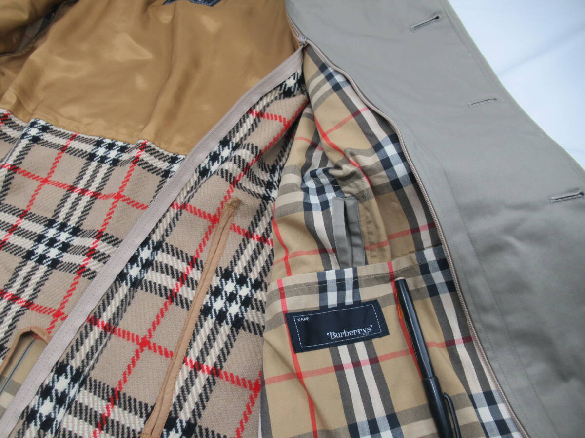 ★【B送900円】2508 Burberrys バーバリーズ ステンカラーコート バルマカーン カーキ系 ライナー付き ノバチェック ミディ丈